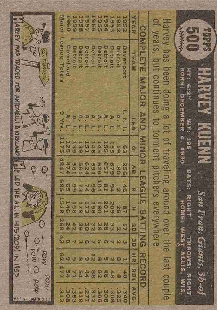 1961 Topps #500 Harvey Kuenn SF Giants
