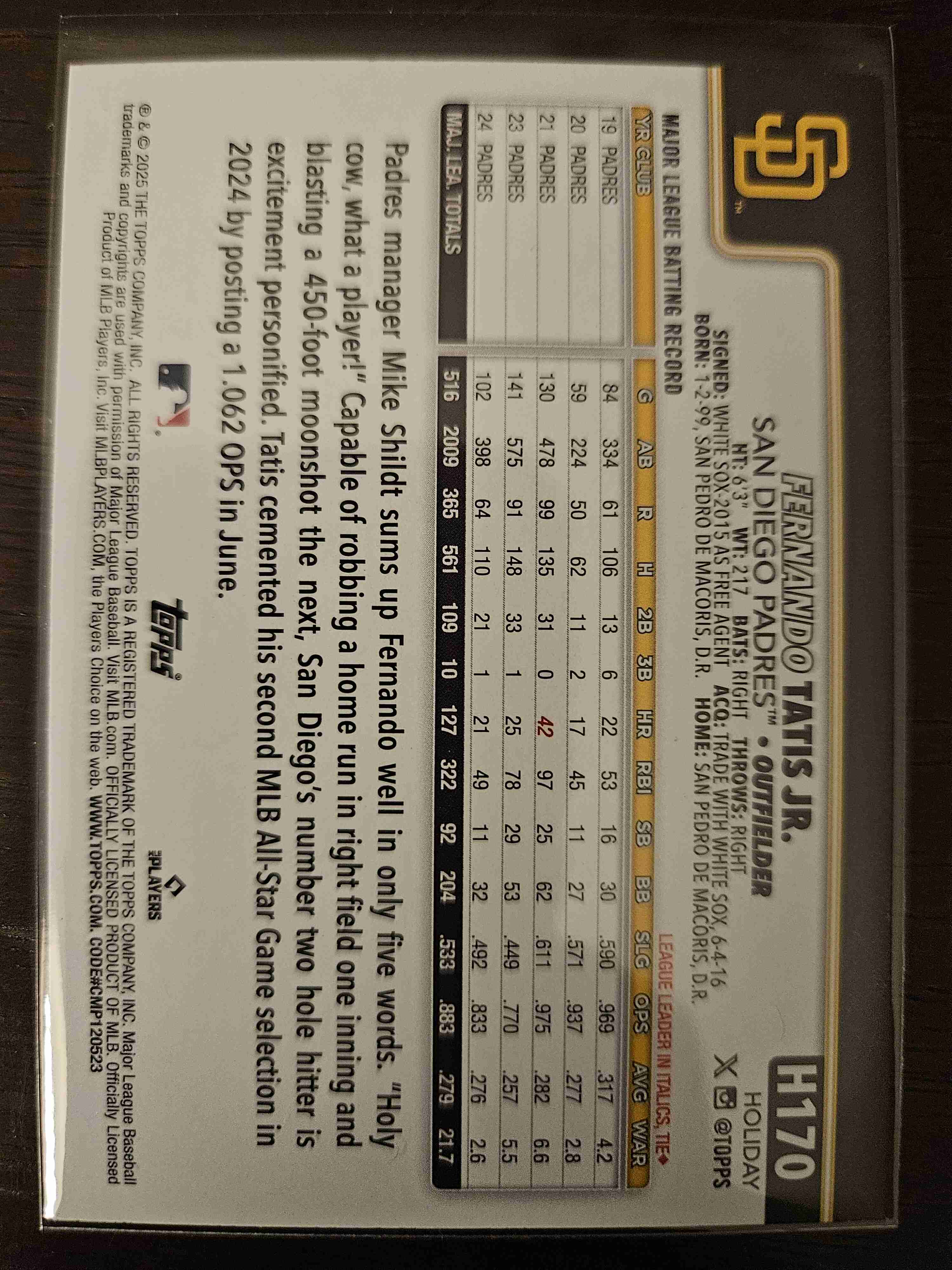 Fernando Tatis Jr 2025 Topps Holiday Christmas Necklace SSP