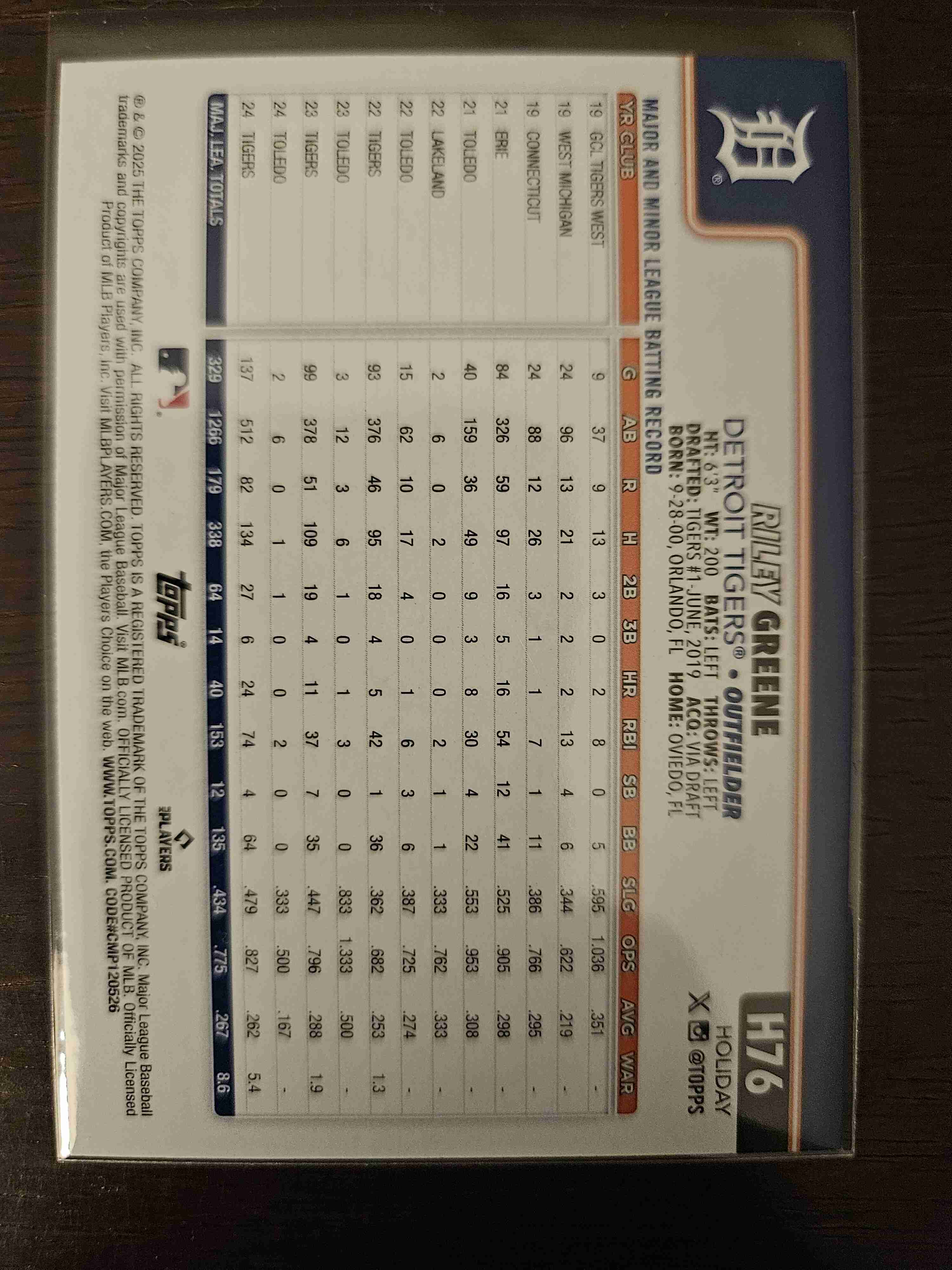 Riley Greene 2025 Topps Holiday Glitter SP Detroit Tigers
