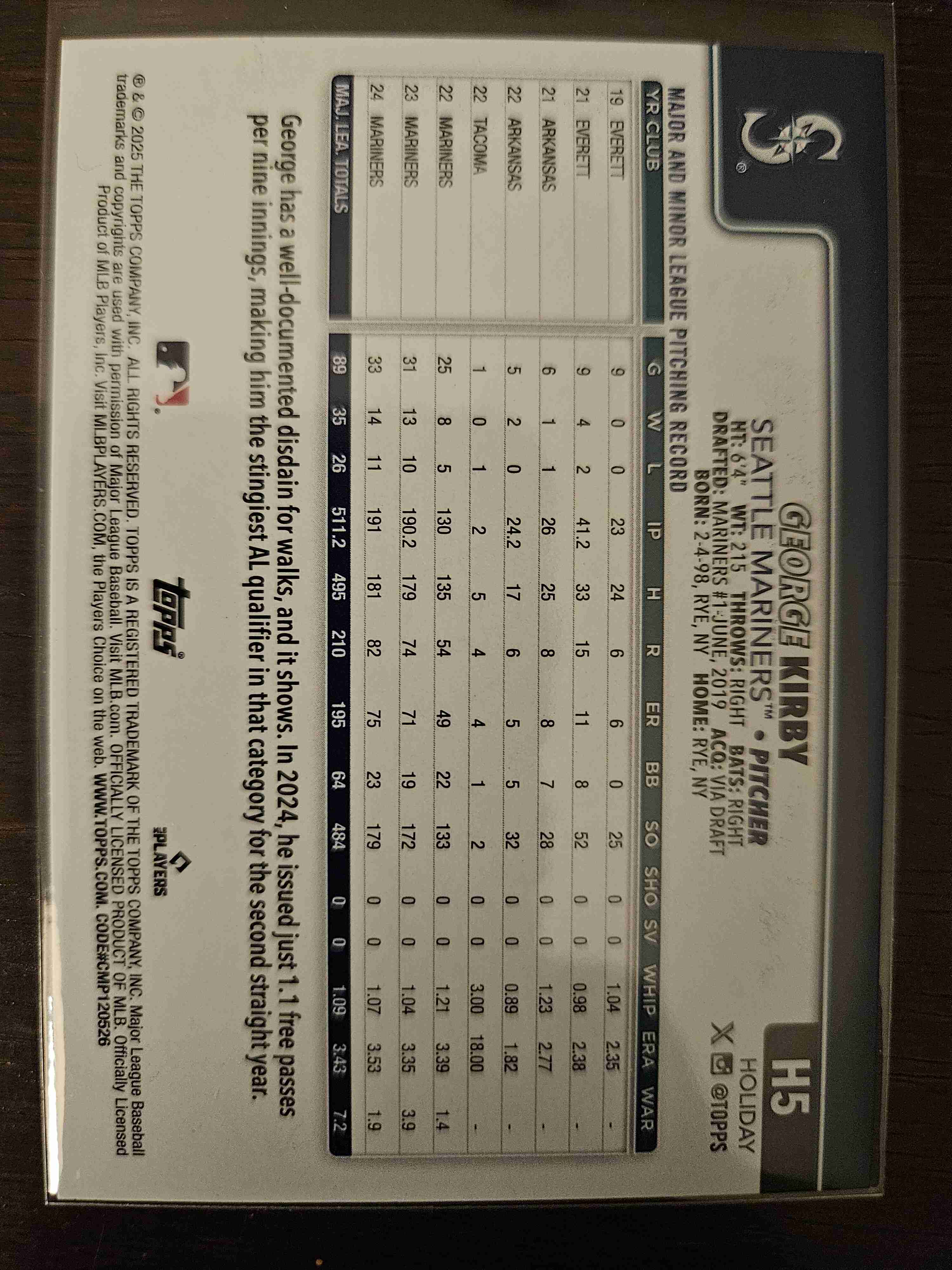 George Kirby 2025 Topps Holiday Glitter SP Seattle Mariners