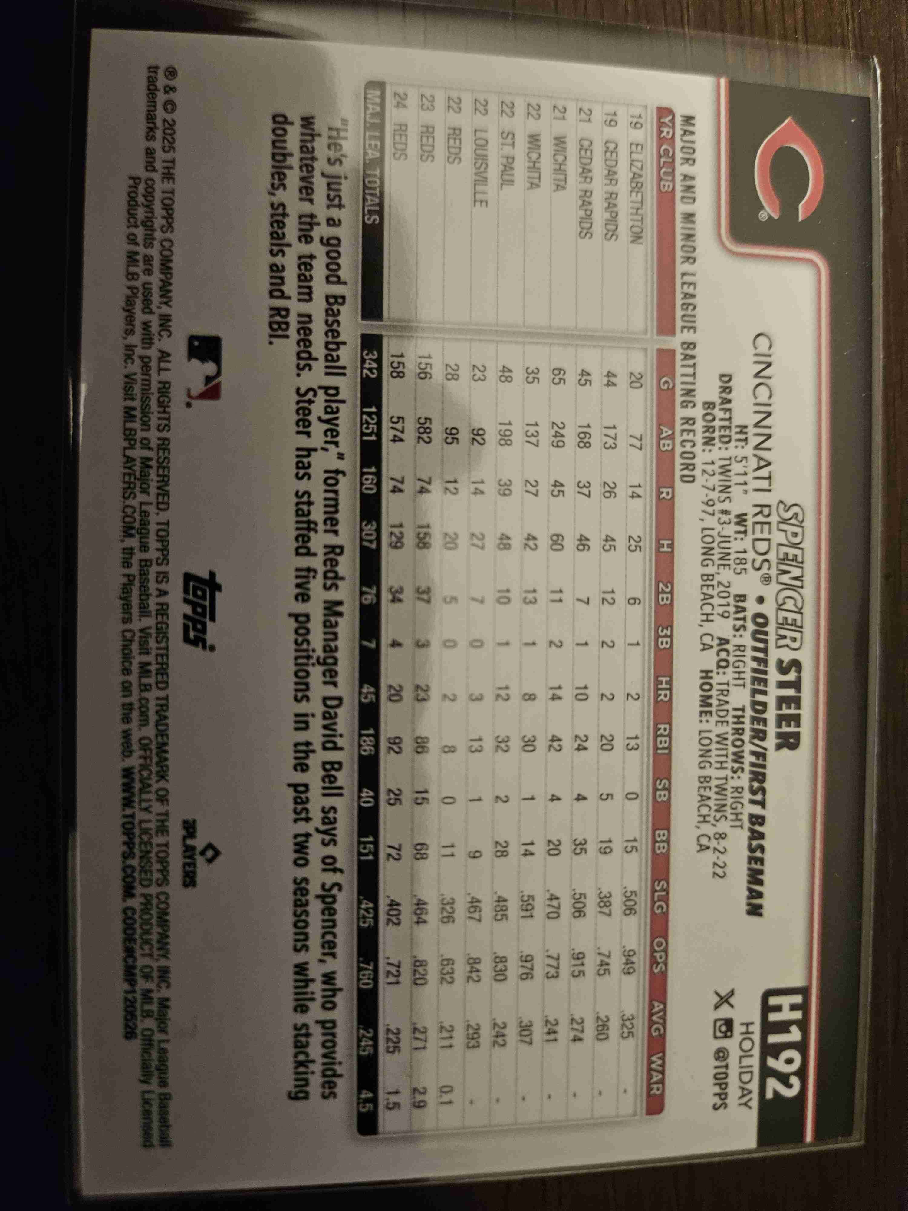 Spencer Steer 2025 Topps Holiday Glitter SP Cincinnati Reds