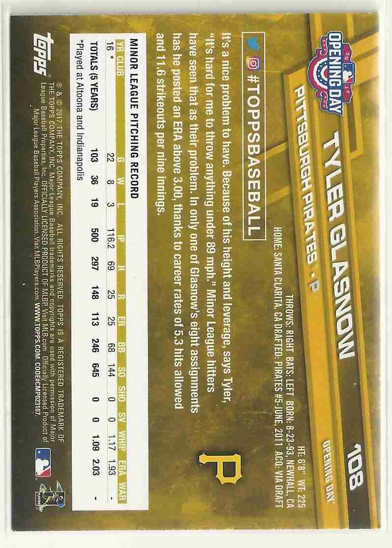 TYLER GLASNOW 2017 Topps Opening Day Blue Foil RC
