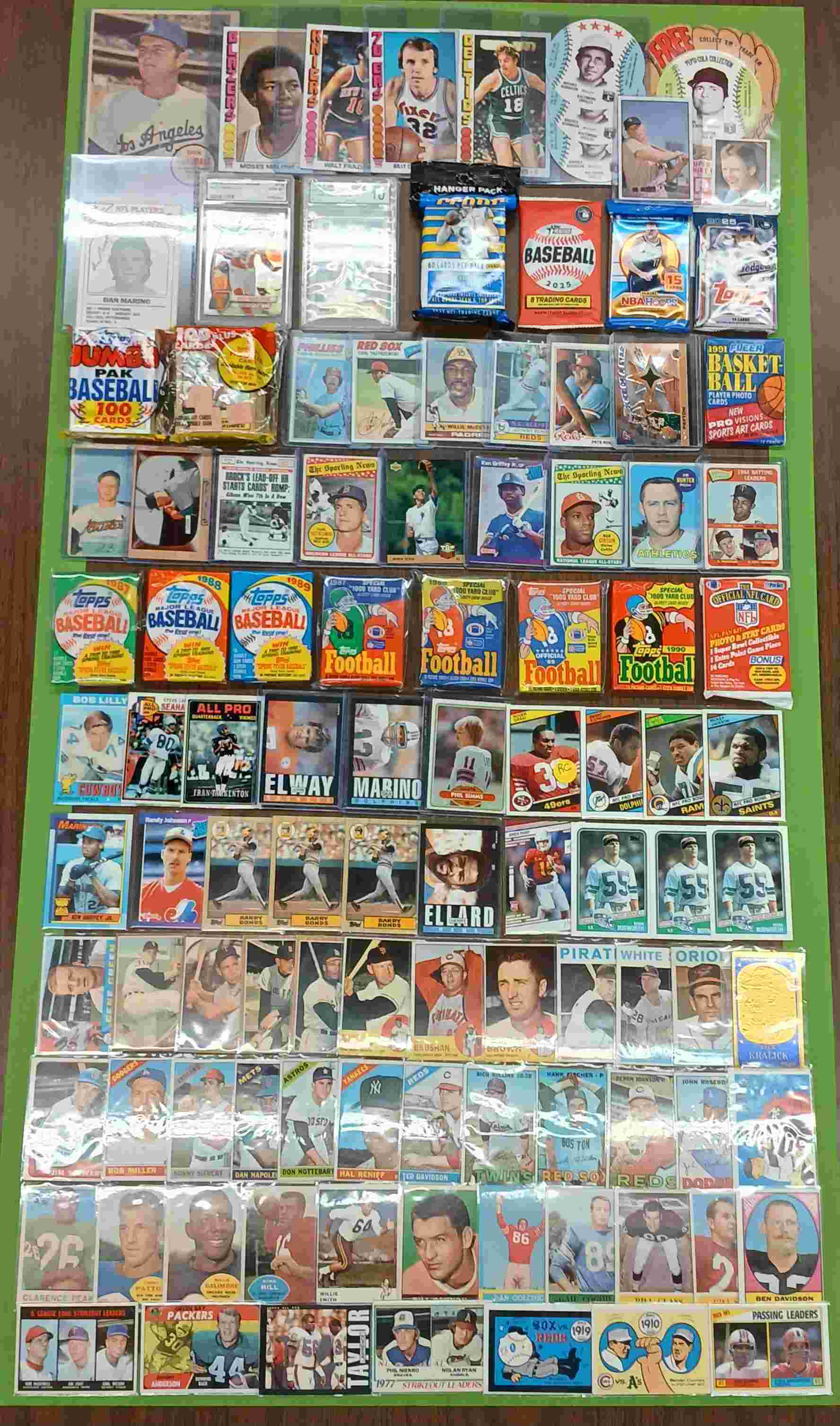 This auction is for a Large SPORTS CARDS (1000)+ Collection ranging 1950's to PRESENT and LOADED with Vintage Cards, HOFers, Rookies, Wax Packs and Super Stars! You will receive everything pictured. The High Bidder agrees to pay $ 20.00 S/H Cost. Canadian Bidder agrees to pay 95.00 S/H Cost. Please email me with any questions. Thanks for looking and good luck bidding.