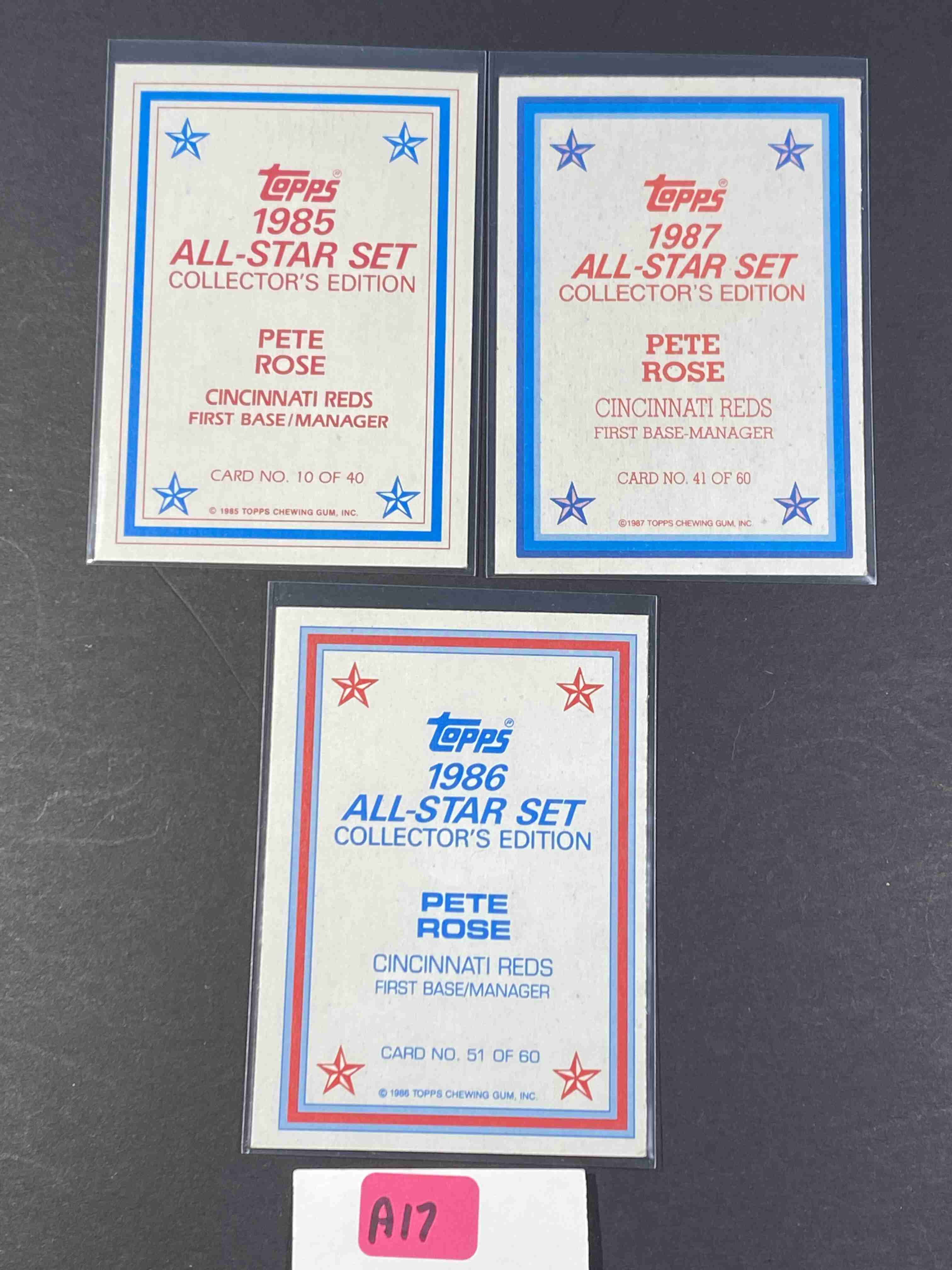 Pete Rose Topps 85, 86 & 87 All Star Lot of 3
