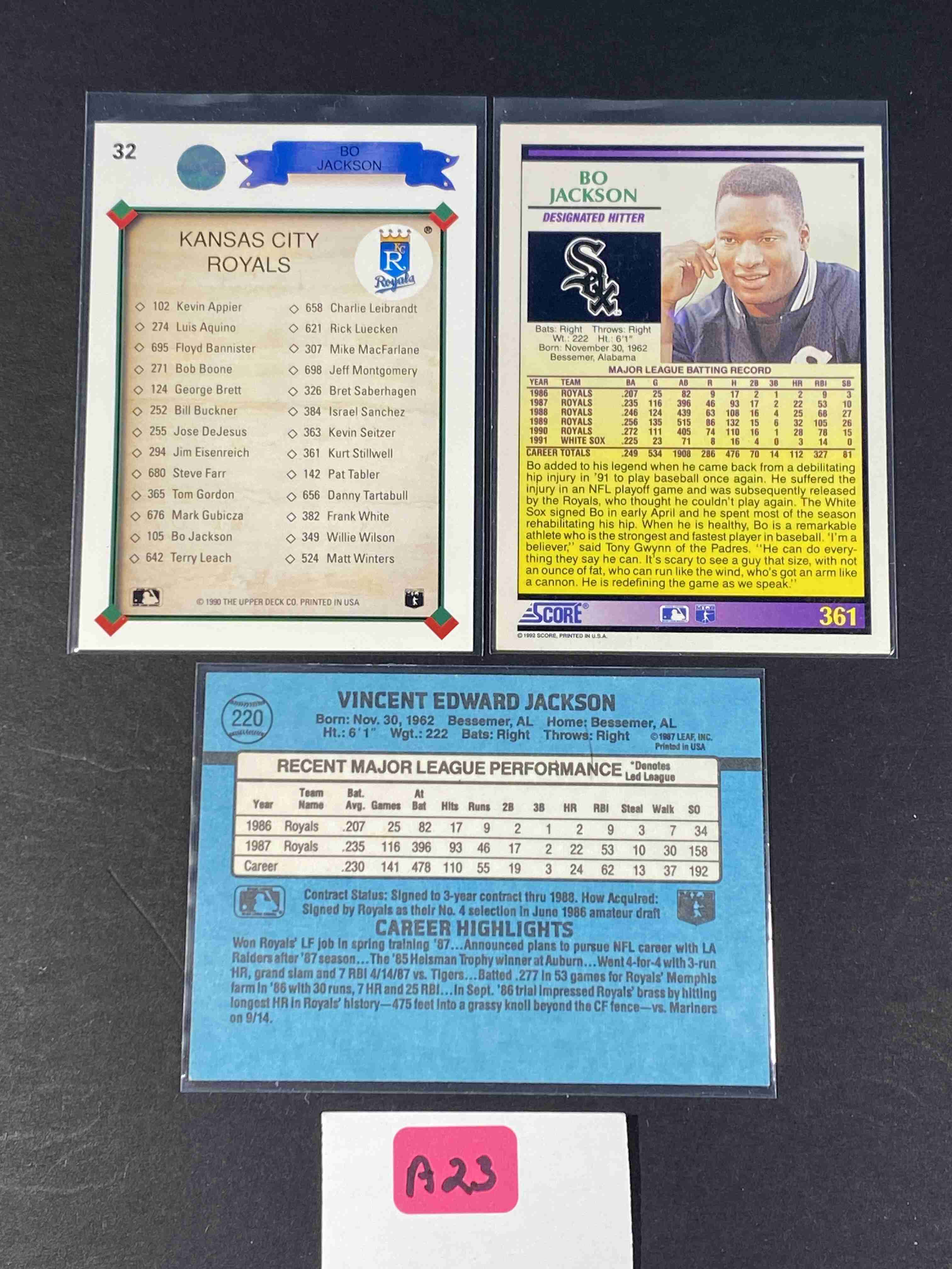 Bo Jackson Lot of 3 Baseball Cards