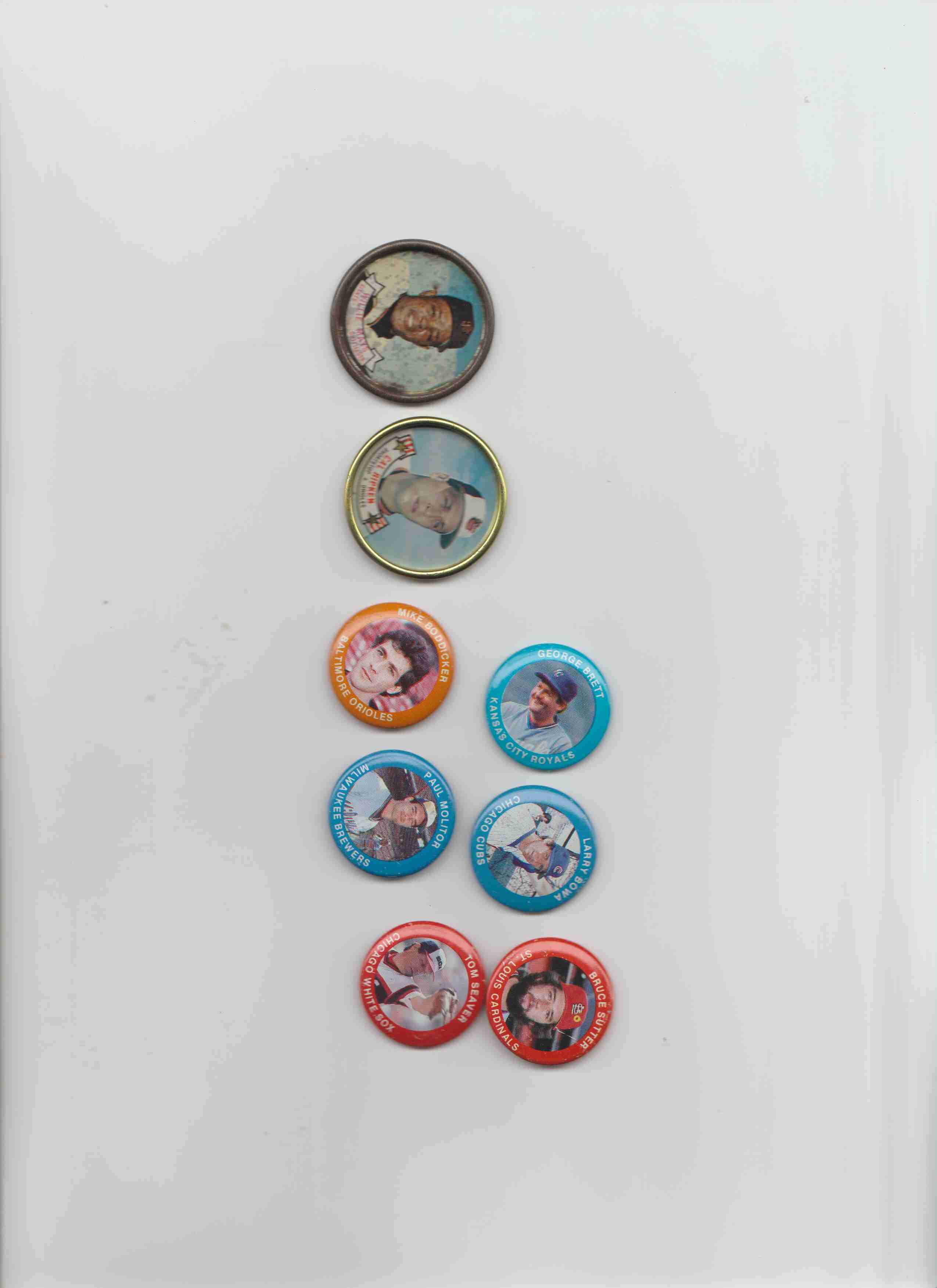 YOU ARE BIDDING ON 26 FUN FOOD PINS AND 3 COINS SEE SCAN FOR SOME OF TH PINS AND CAL RIPKEN AND WILLIE MAYES COIN