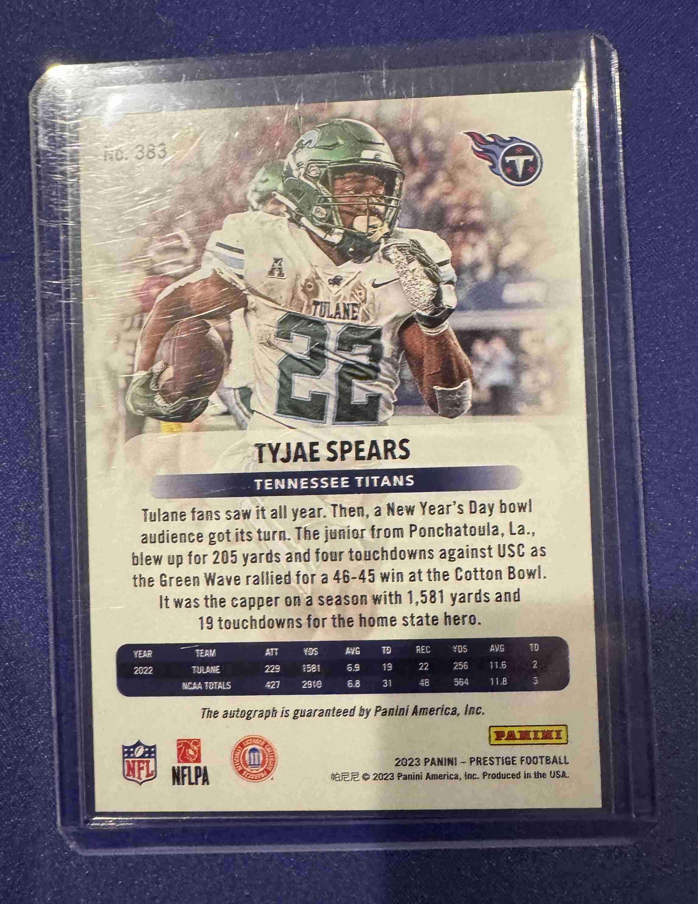 Tyjae Spears Rookie Auto! 2023 Prestige! Titans!