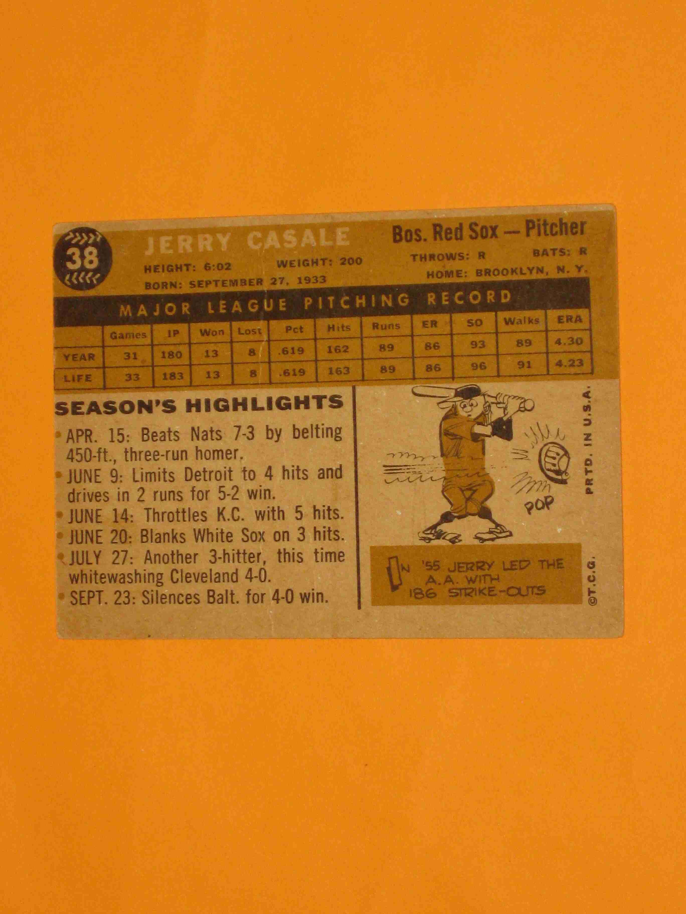 1960 Topps Jerry Casale #38 Boston Red Sox