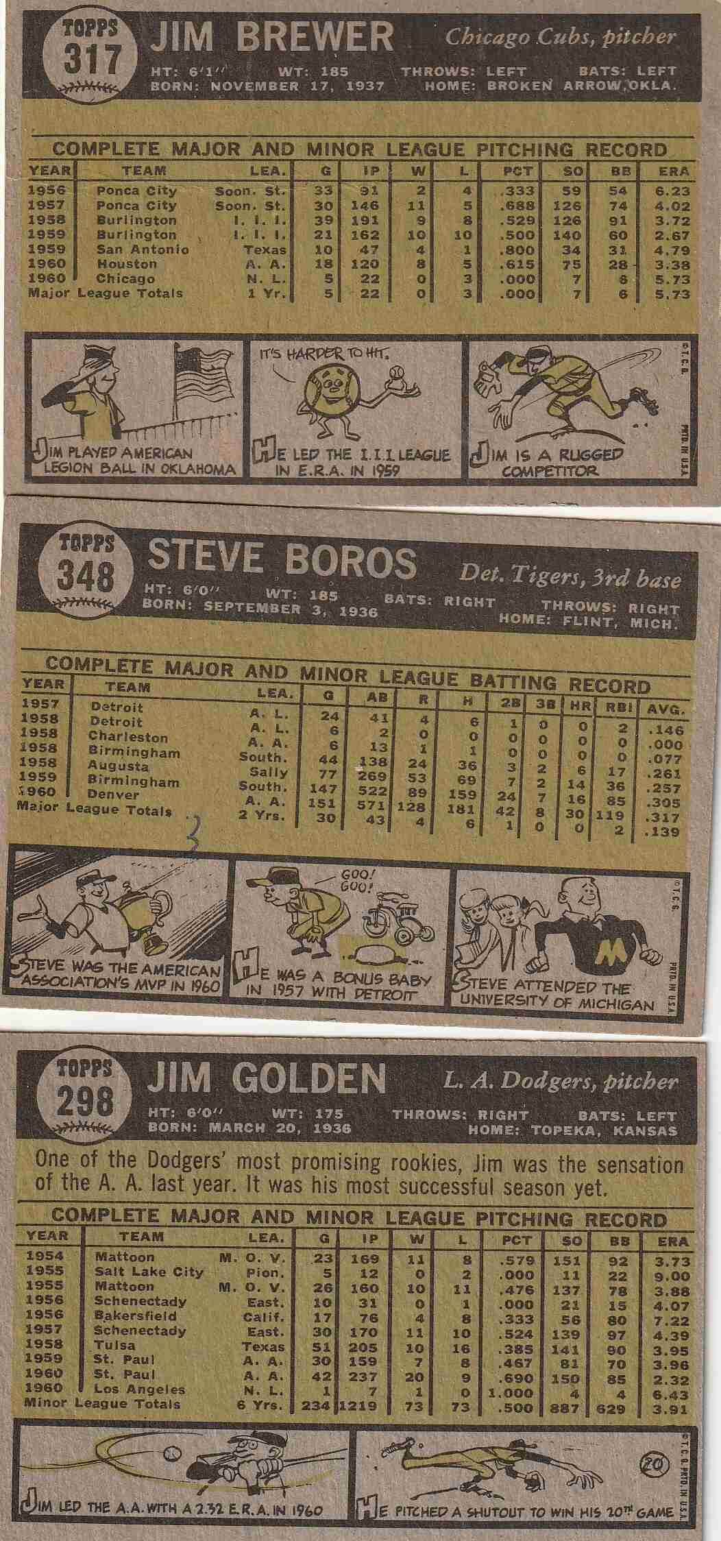 #219 Jim Golden Dodgers (EX/NM) #317 Jim Brewer Cubs (VG+/EX) bend