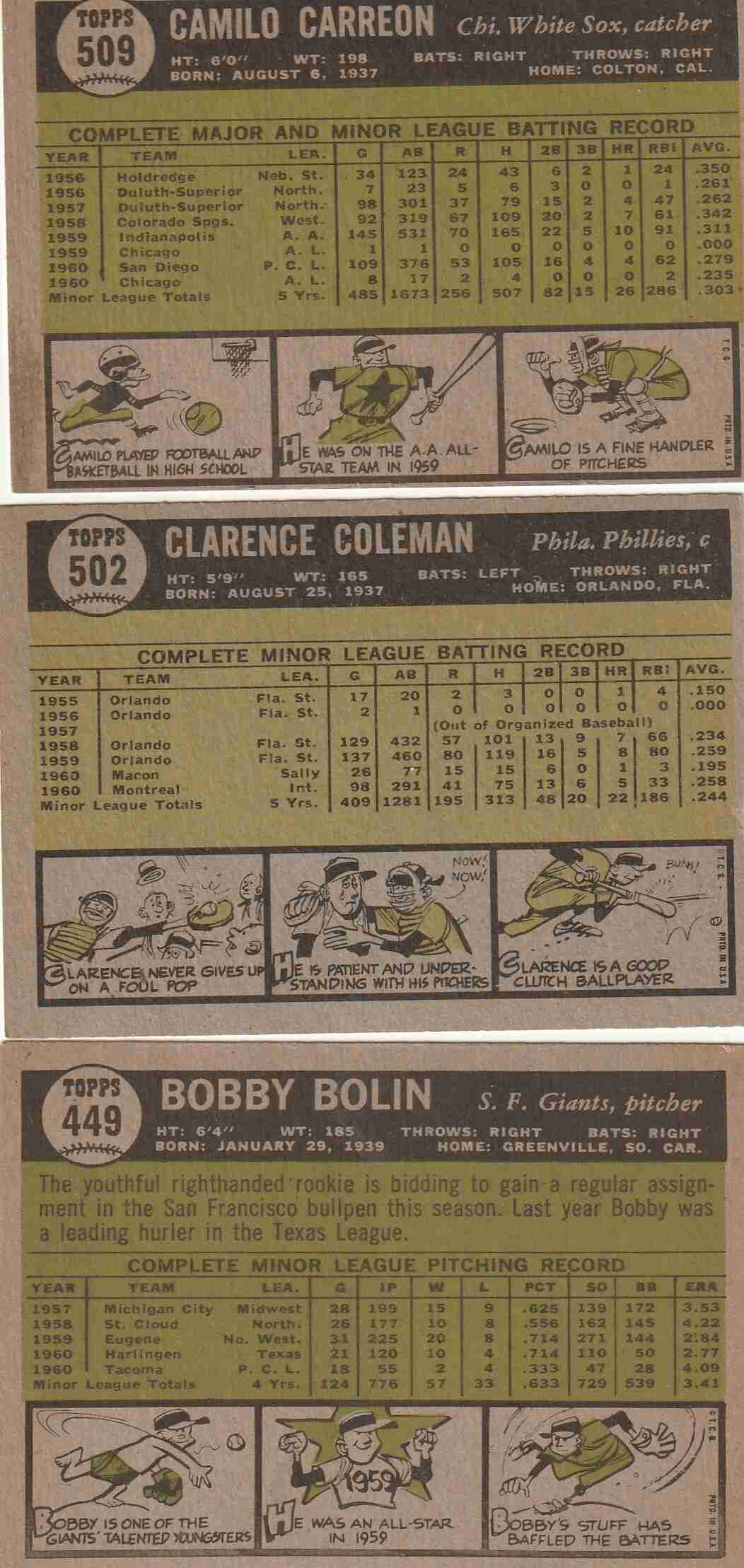 #502 Clarence Coleman Phillies (EX/NM) OC #509 Camilo Carreon (obvious mark)
