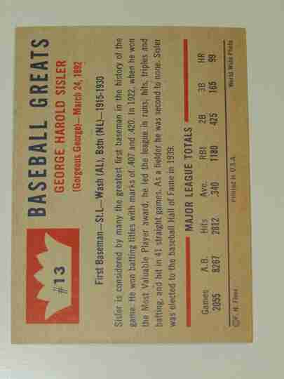 1960 Fleer #13 George Sisler - EX/EX+ - BV $8