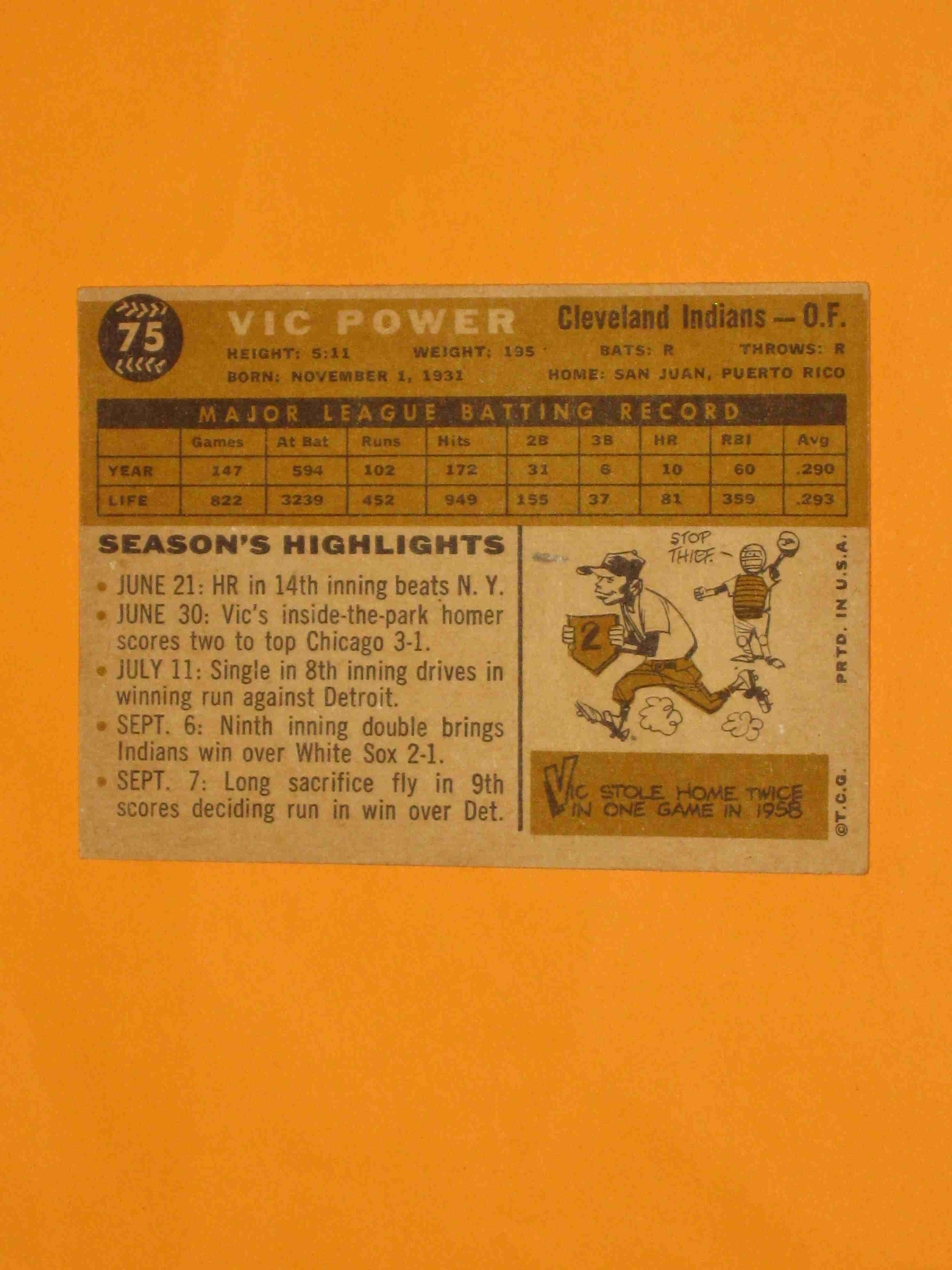 1960 Topps Vic Power #75 Cleveland Indians NICE