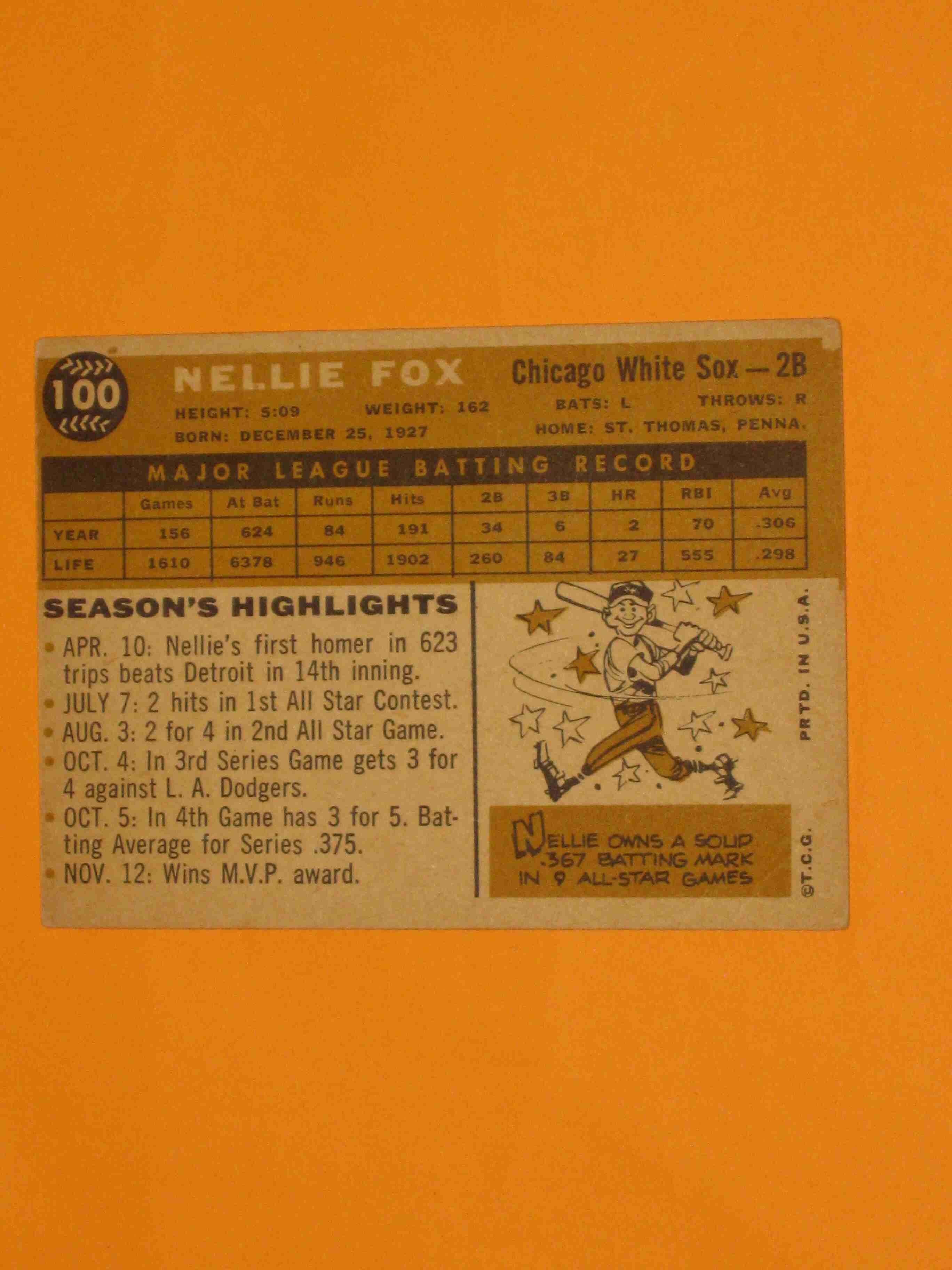 1960 Topps Nellie Fox #100 Chicago White Sox
