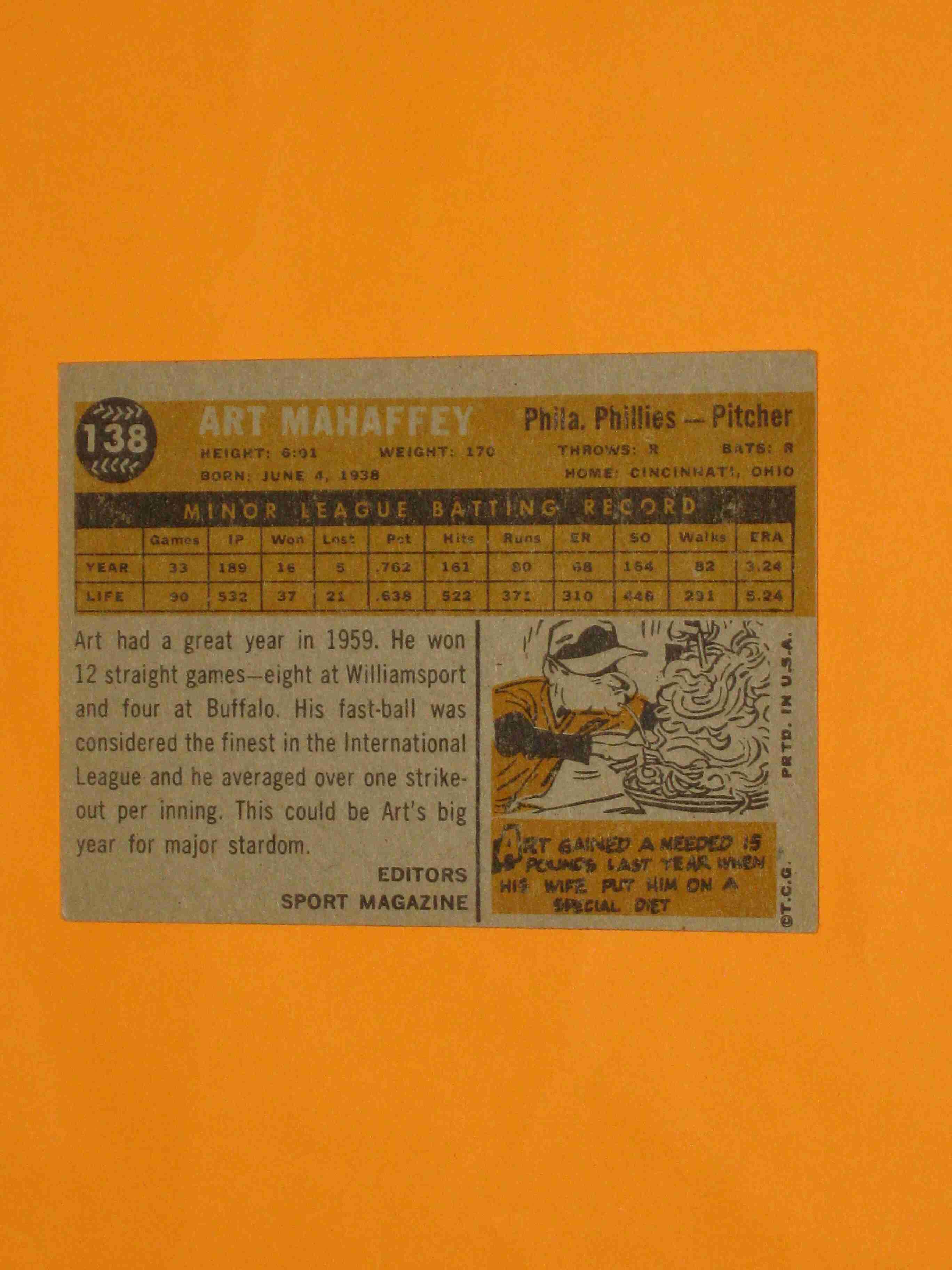 1960 Topps Art Mahaffey #138 Philadelphia Phillies