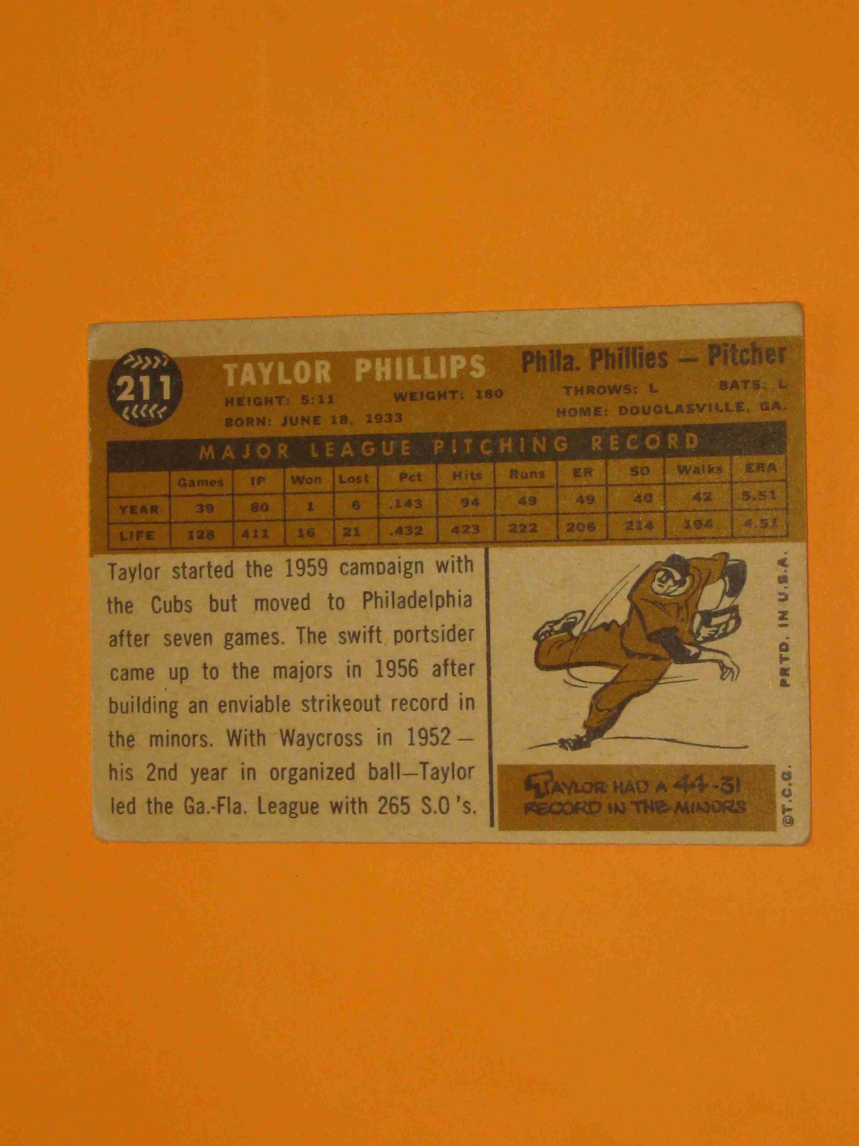 1960 Topps Taylor Phillips #211 Philadelphia Phillies