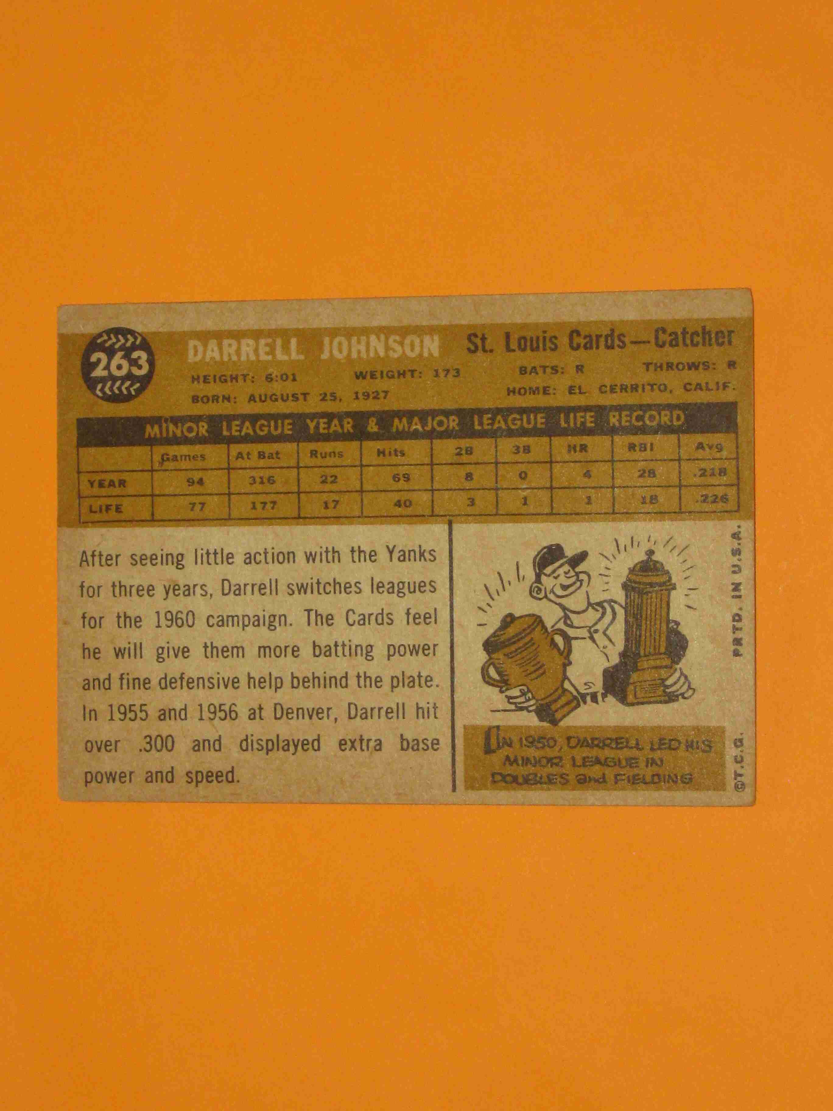 1960 Topps Darrell Johnson #263 St Louis Cardinals