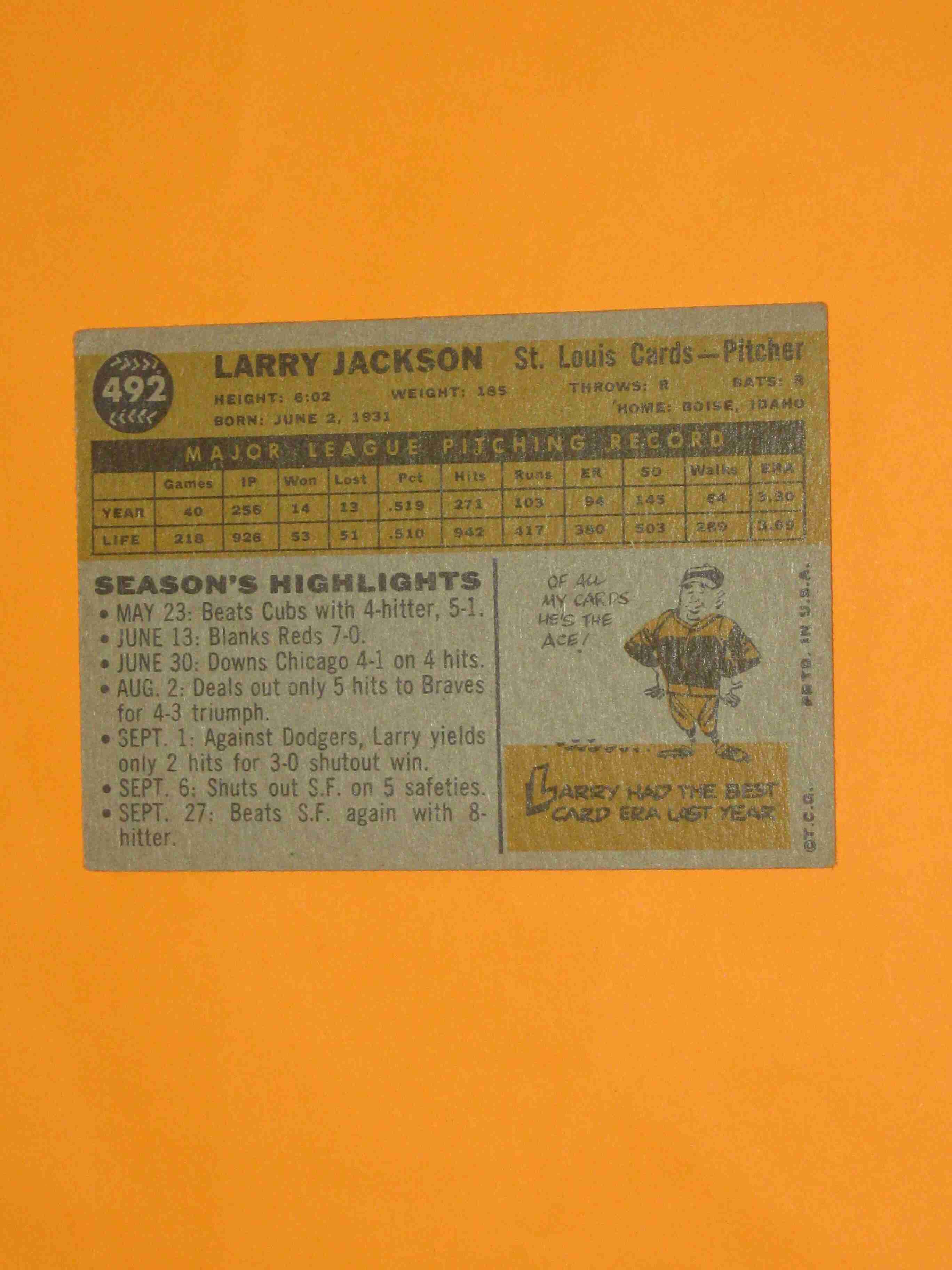 1960 Topps Larry Jackson #492 St Louis Cardinals