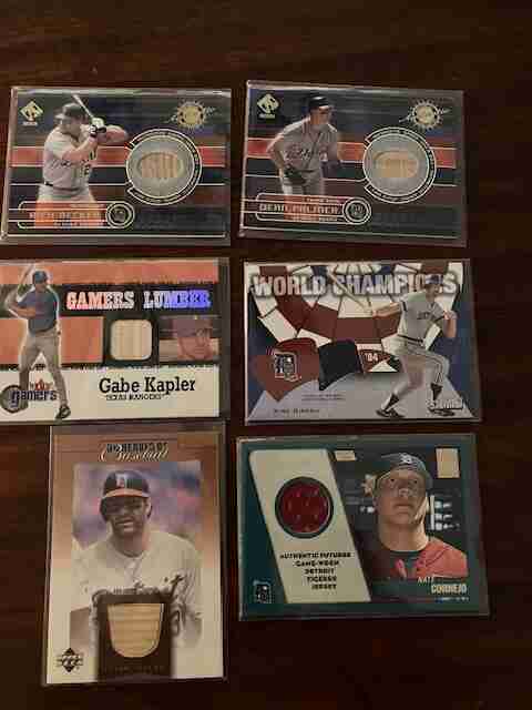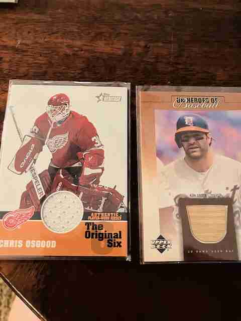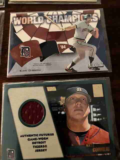 DETROIT TIGERS/RED WINGS RELIC CARDS (7) NM.