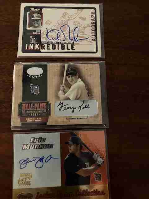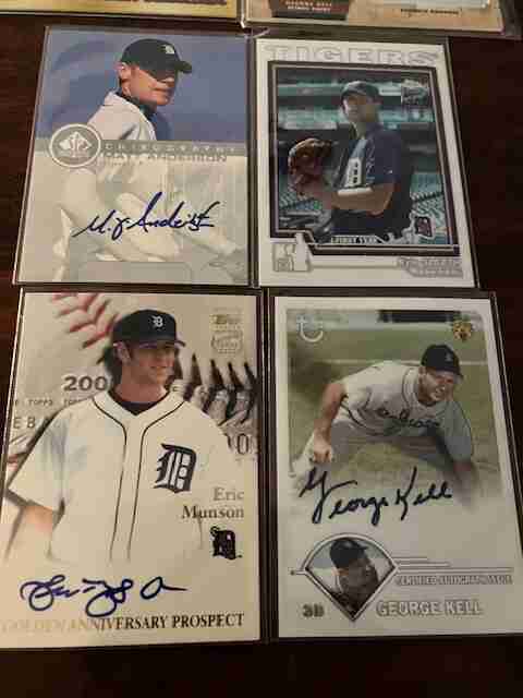 DETROIT TIGERS AUTO CARDS (7) NM. (2) GEORGE KELL - (2) ERIC MUNSON - KIRK GIBSON - MATT ANDERSON - KYLE SLEETH