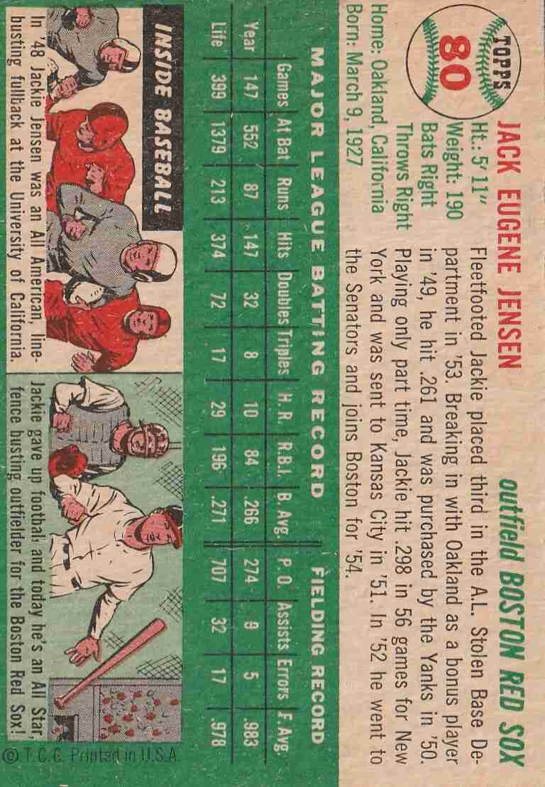 1954 Topps #80 Jackie Jensen Boston Red Sox