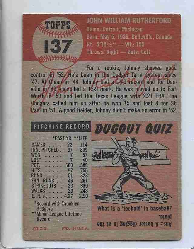 1953 Topps #137 ~ John Rutherford Brooklyn Dodgers