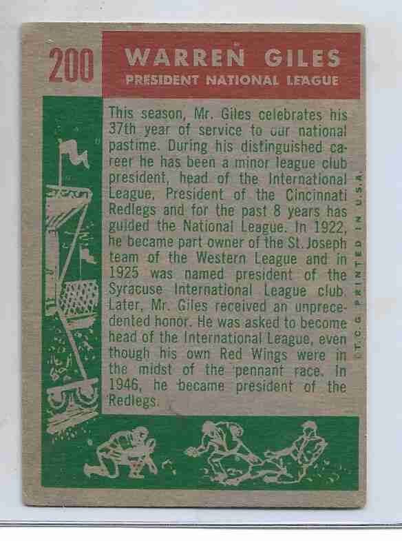 1959 Topps #200 ~ Warren Giles NL President HOF