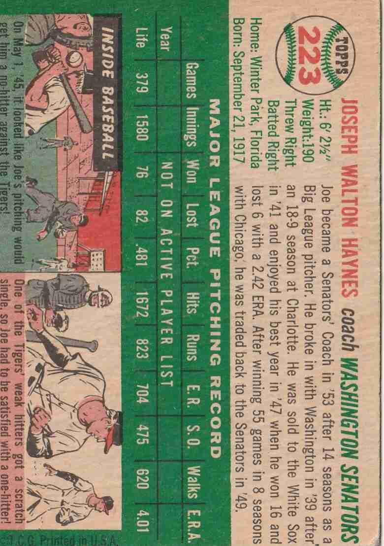 1954 Topps #223 Joe Haynes Washington Senators