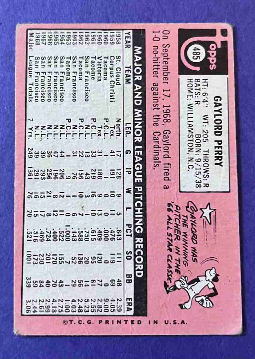 69 Topps GAYLORD PERRY WL #485 HOF!
