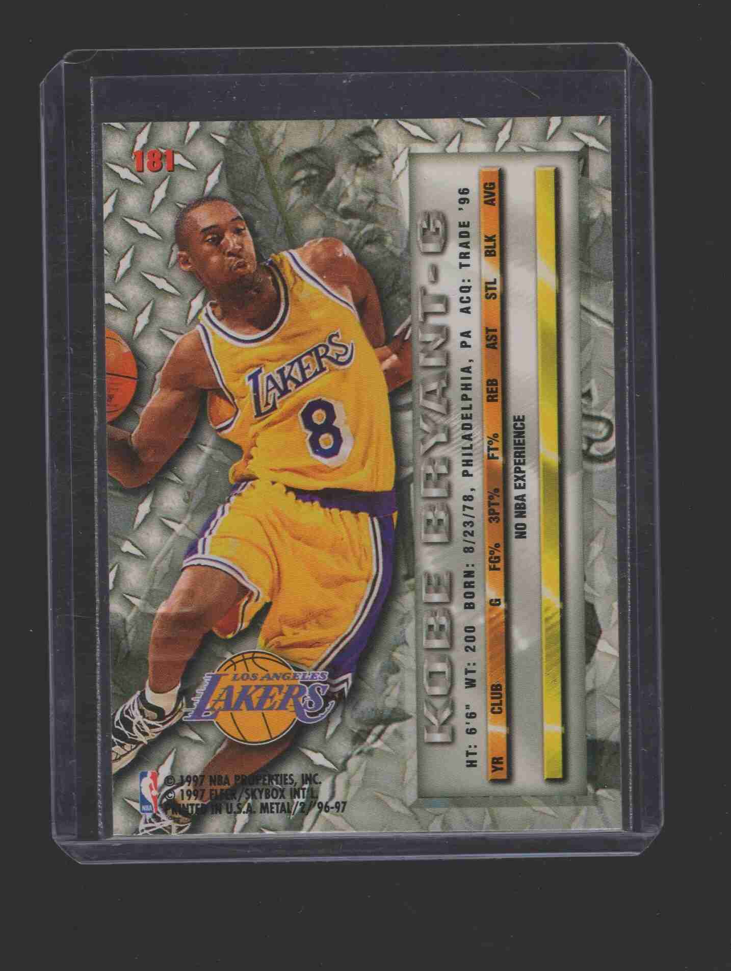 Kobe Bryant 1996-97 Fleer Metal Rookie #181. Card ships bubble mailer with tracking. Check out our other items to help manage shipping costs.
