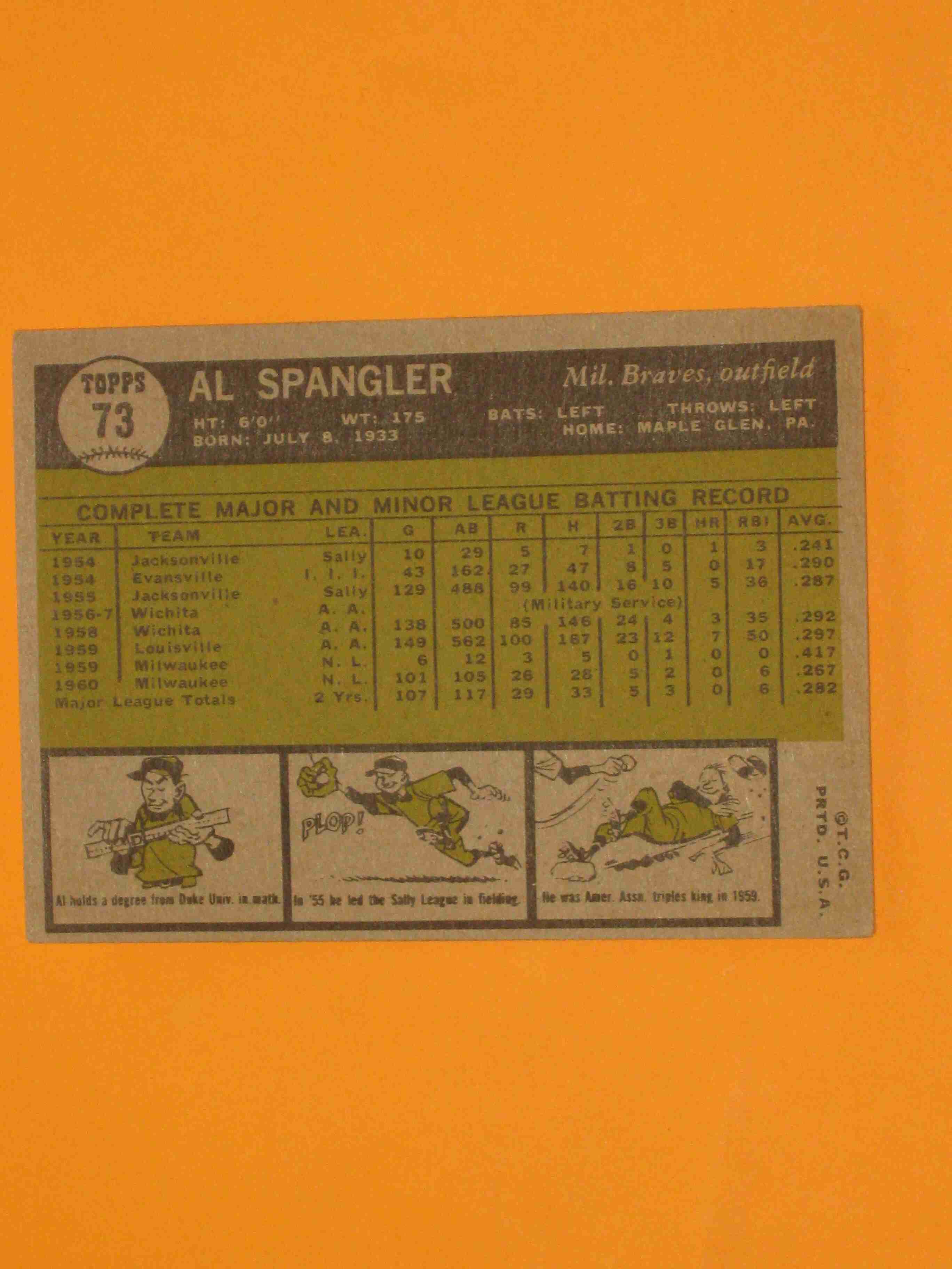 1961 Topps Al Spangler #73 Milwaukee Braves