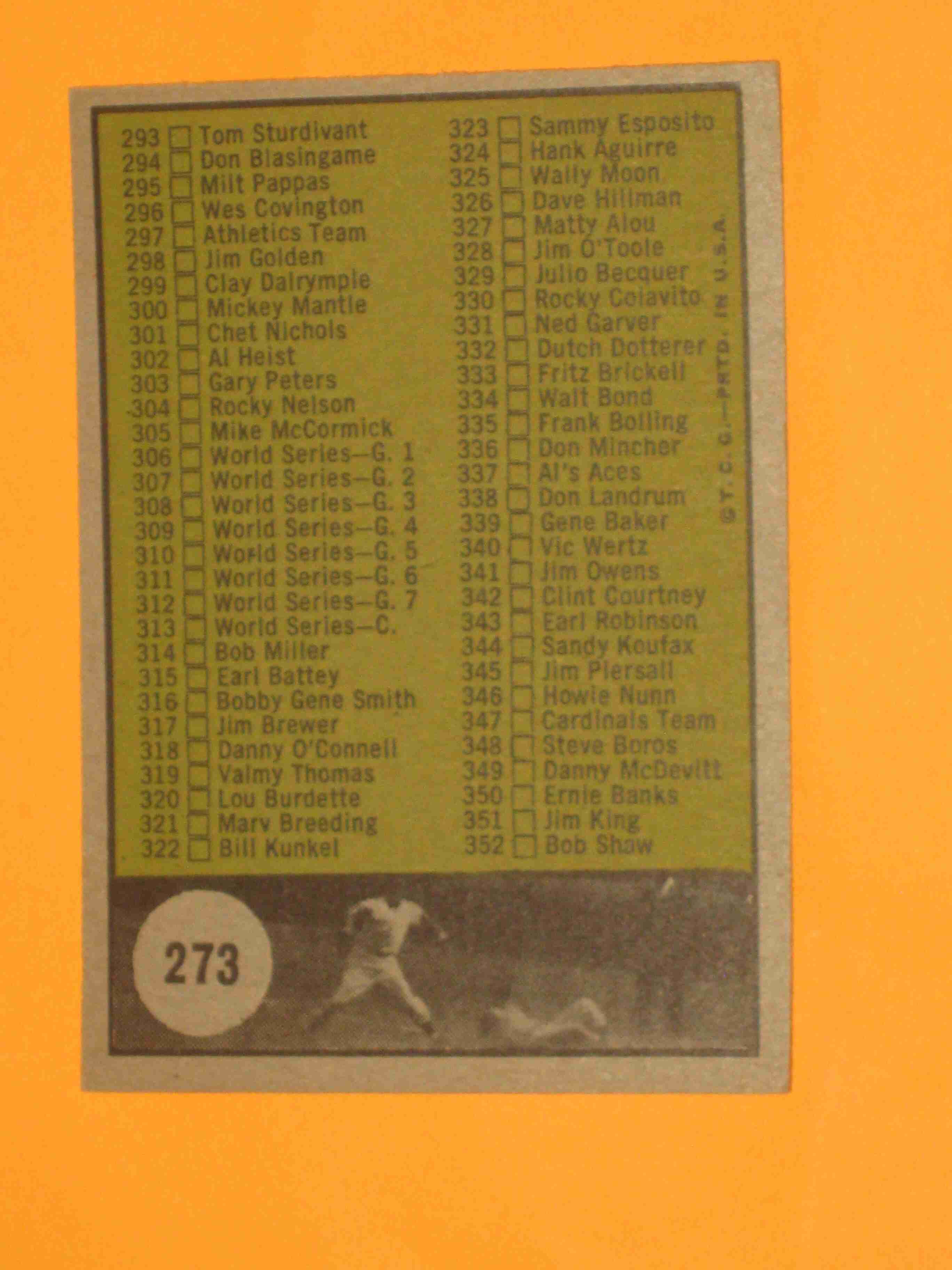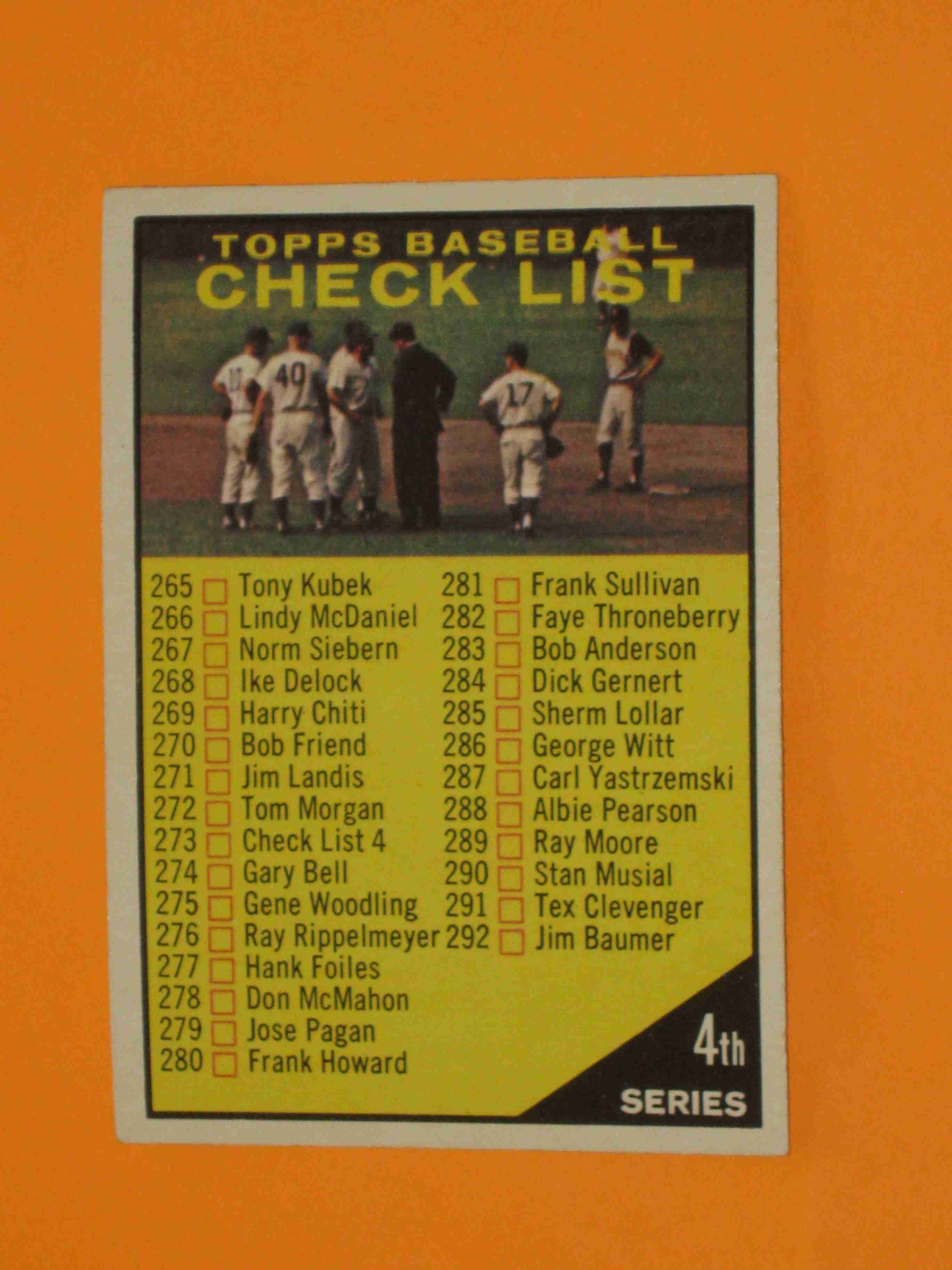 1961 Topps Checklist #273 4th Series Check UNMARKED NICE