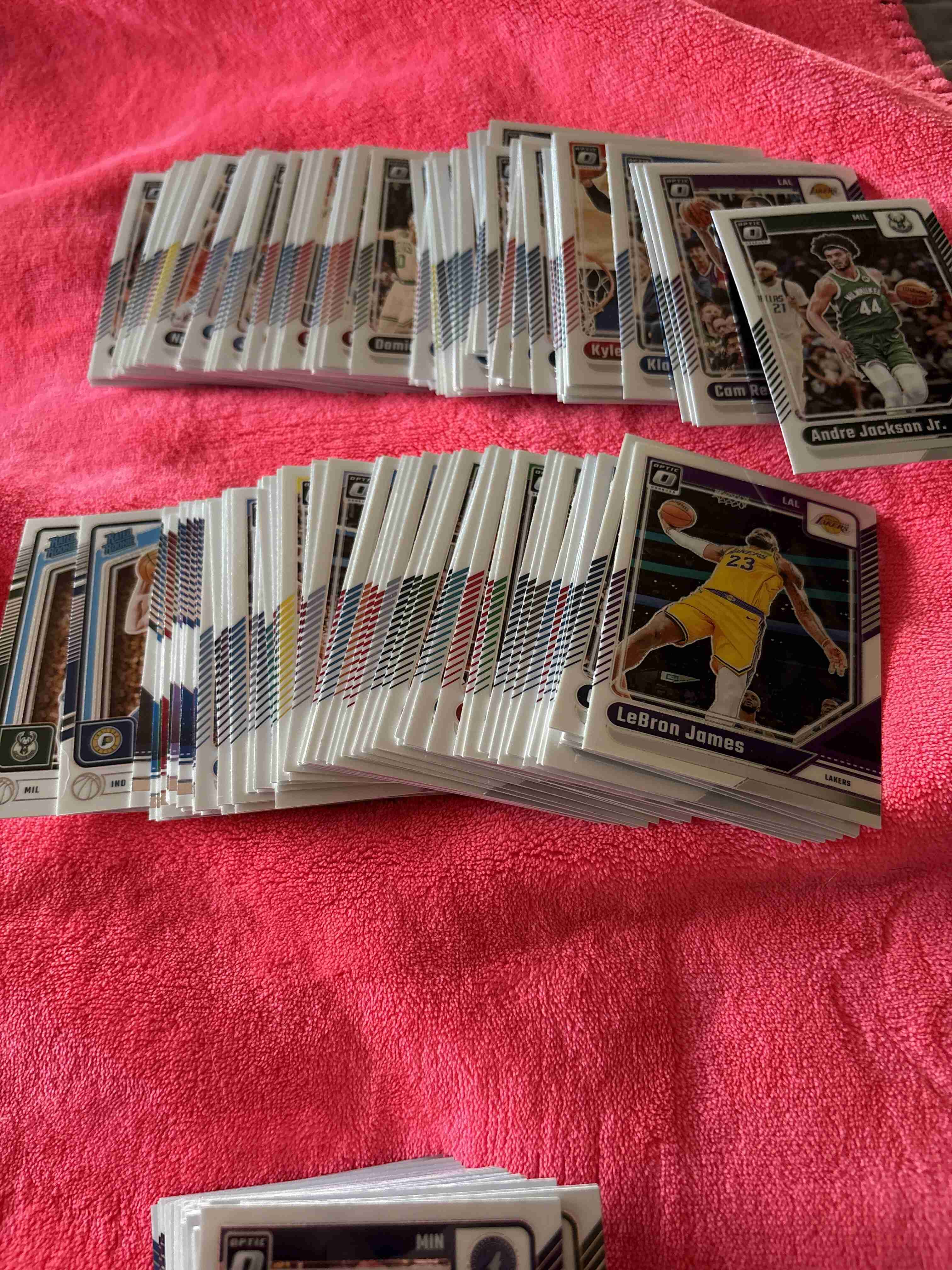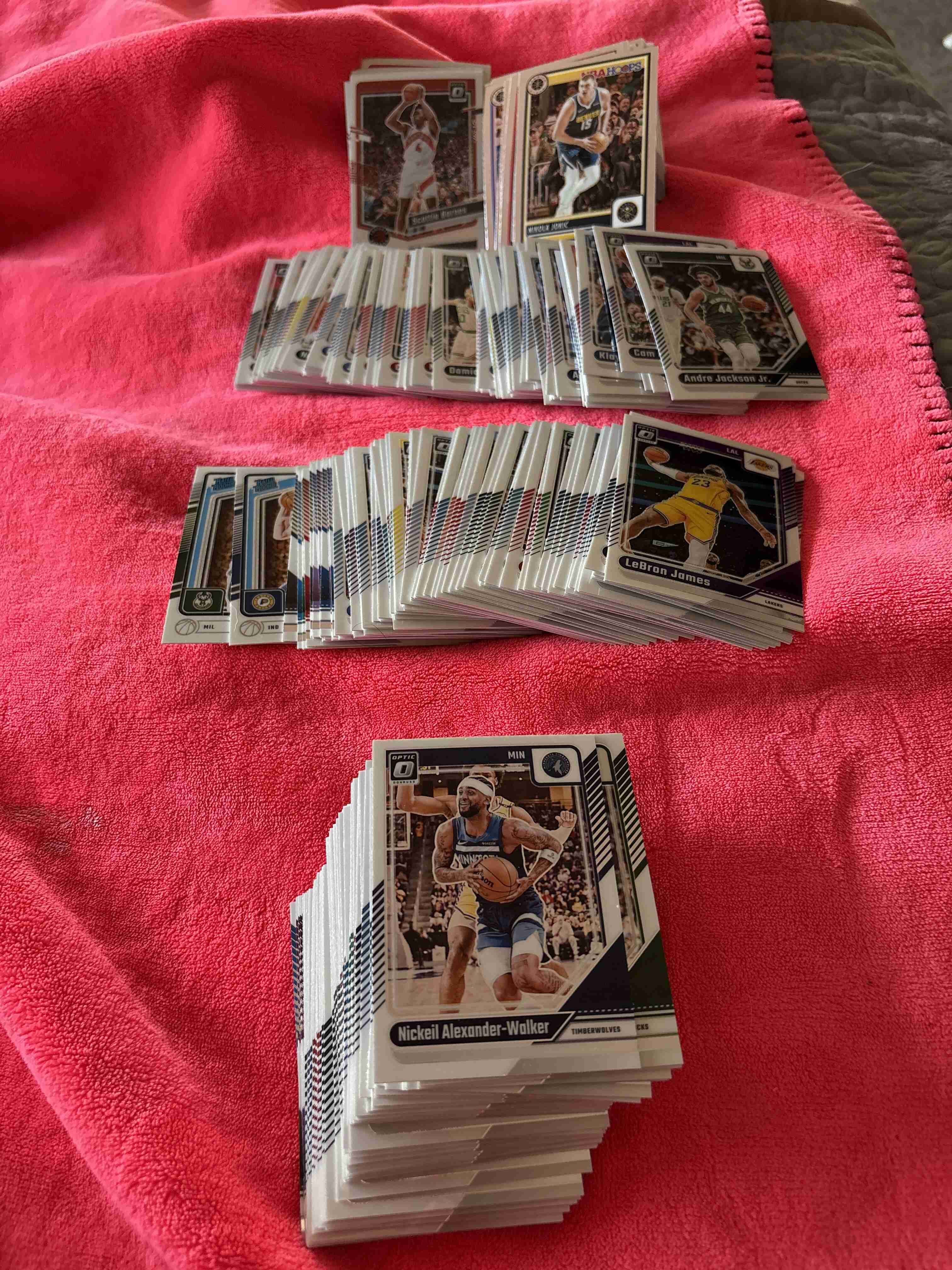Greater starter set here! 139 unique cards. Will include 60 doubles, 13 23-24 optic and 60 23-24 hoops premium stock.