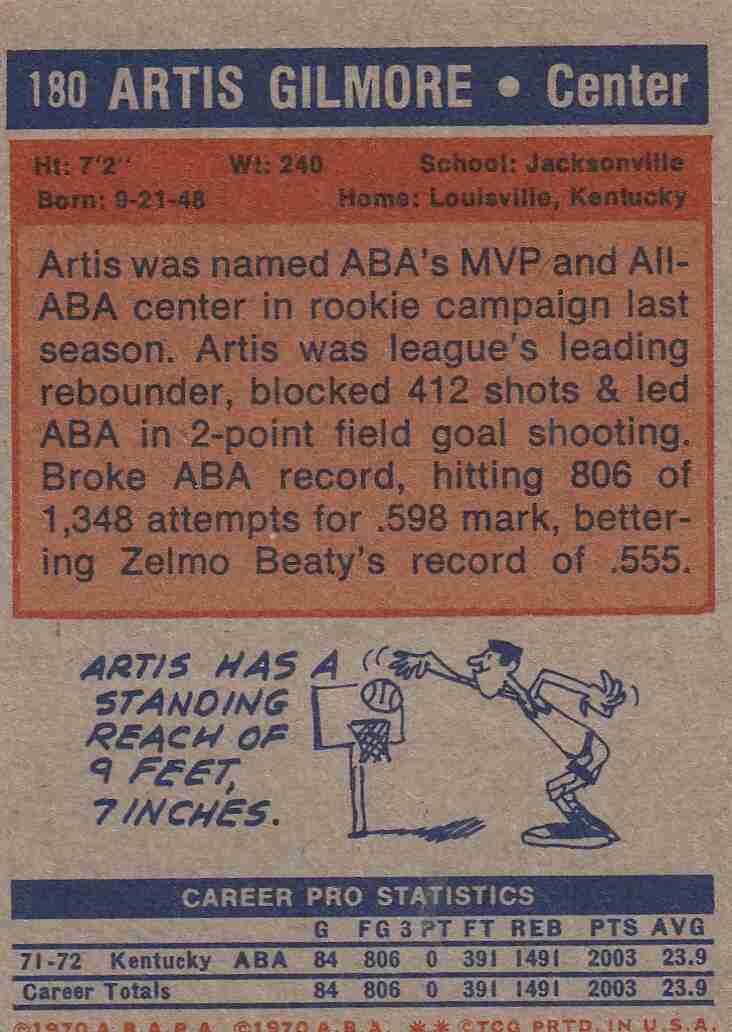 1972-73 Topps #180 Artis Gilmore Colonels