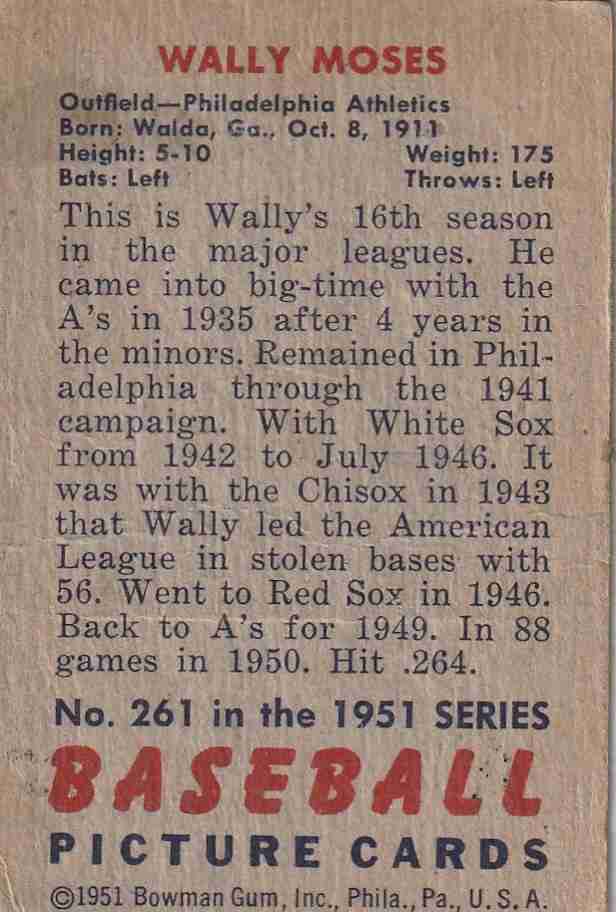 1951 Bowman #261 Wally Moses Philadelphia Athletics