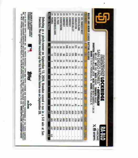 BRANDDON LOCKRIDGE - 2025 TOPPS CHROME AUTO