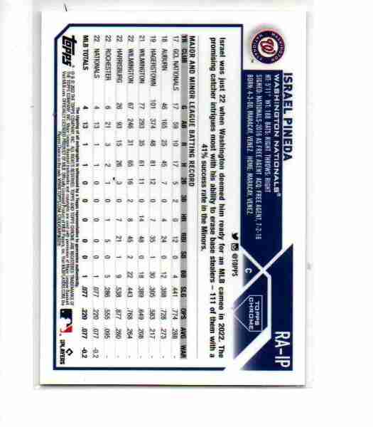 ISRAEL PINEDA RC - 2023 TOPPS CHROME AUTO