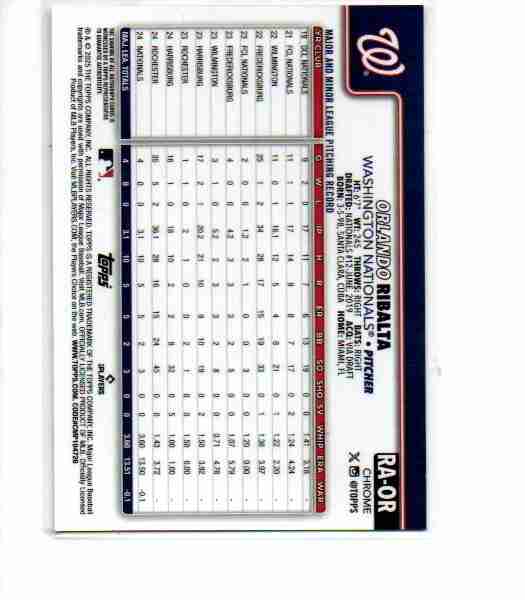 ORLANDO RIBALTA RC - ON CARD AUTO - 2025 TOPPS CHROME