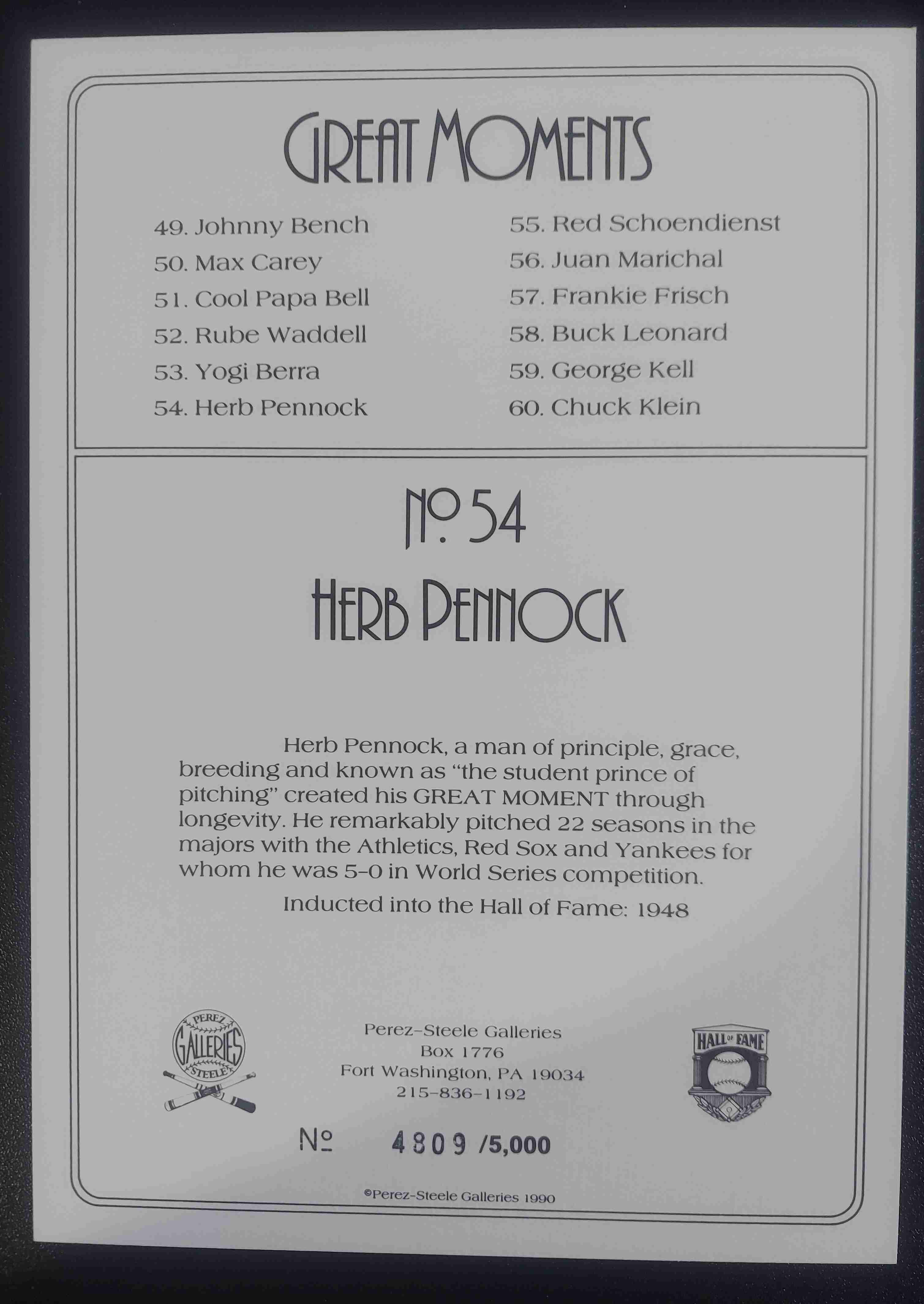 1990 Perez Steele Great Moments Herb Pennock #4809/5000