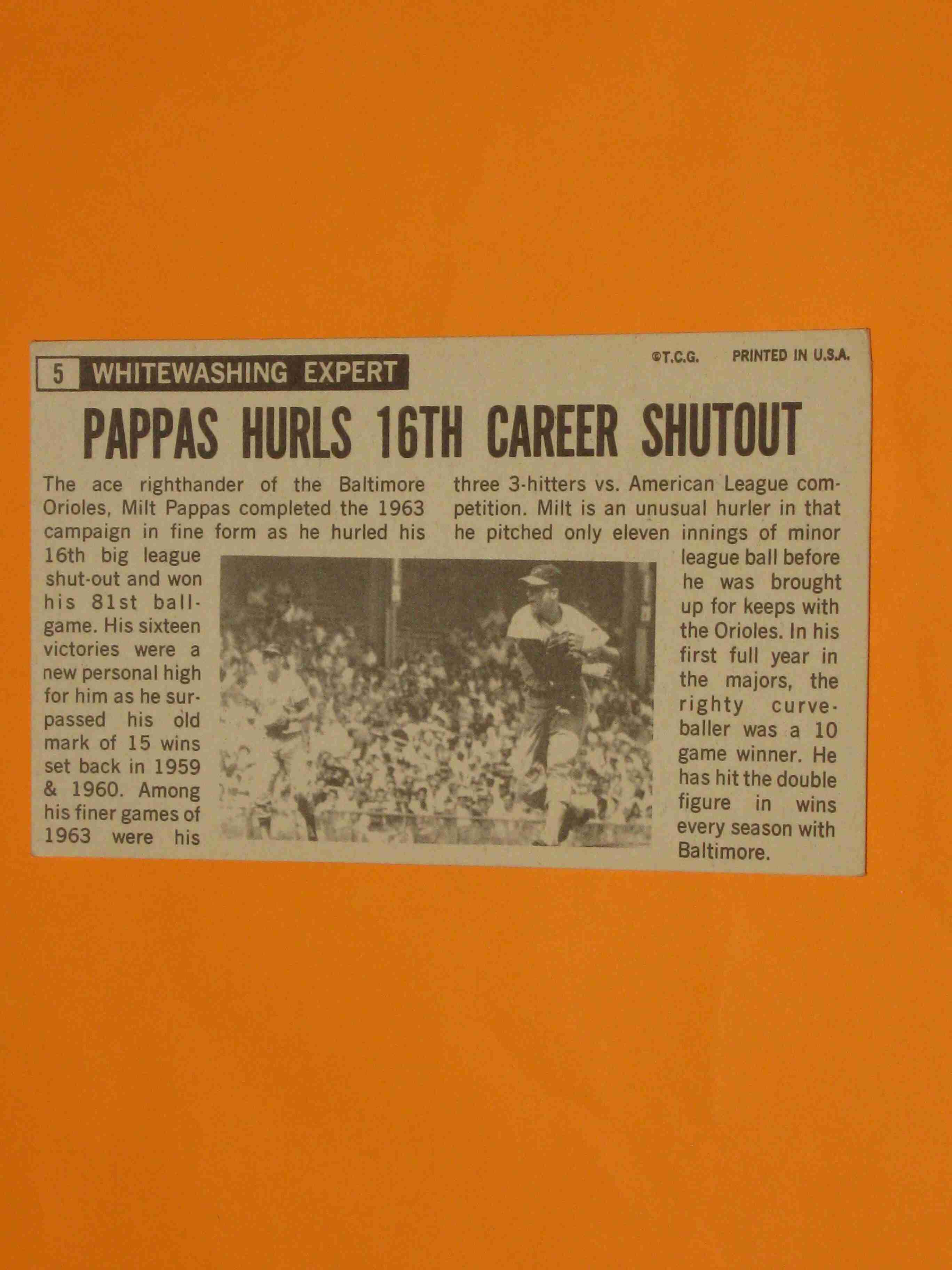 1964 Topps Giants Milt Pappas #5 Baltimore Orioles
