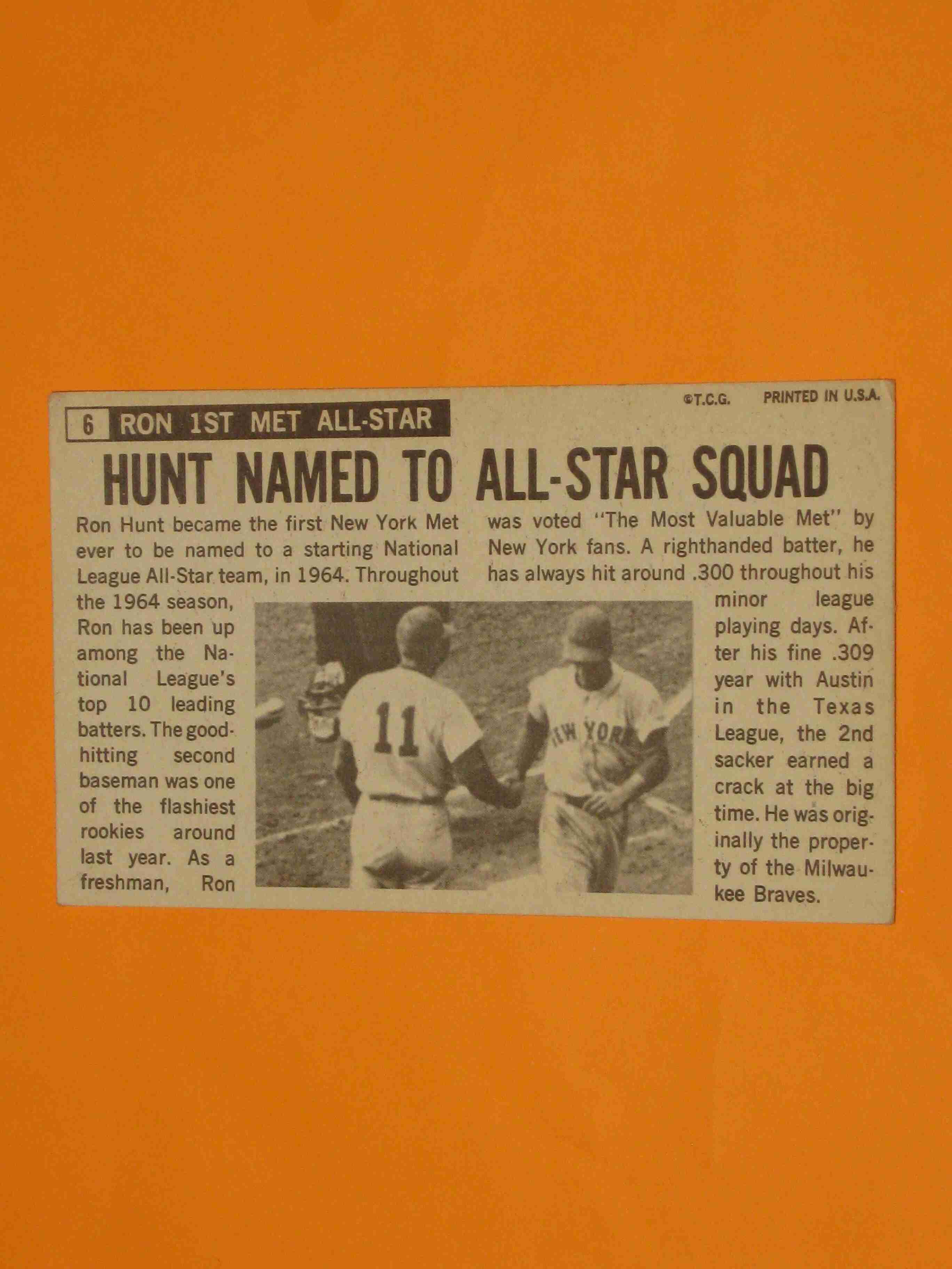 1964 Topps Giants Ron Hunt #6 New York Mets