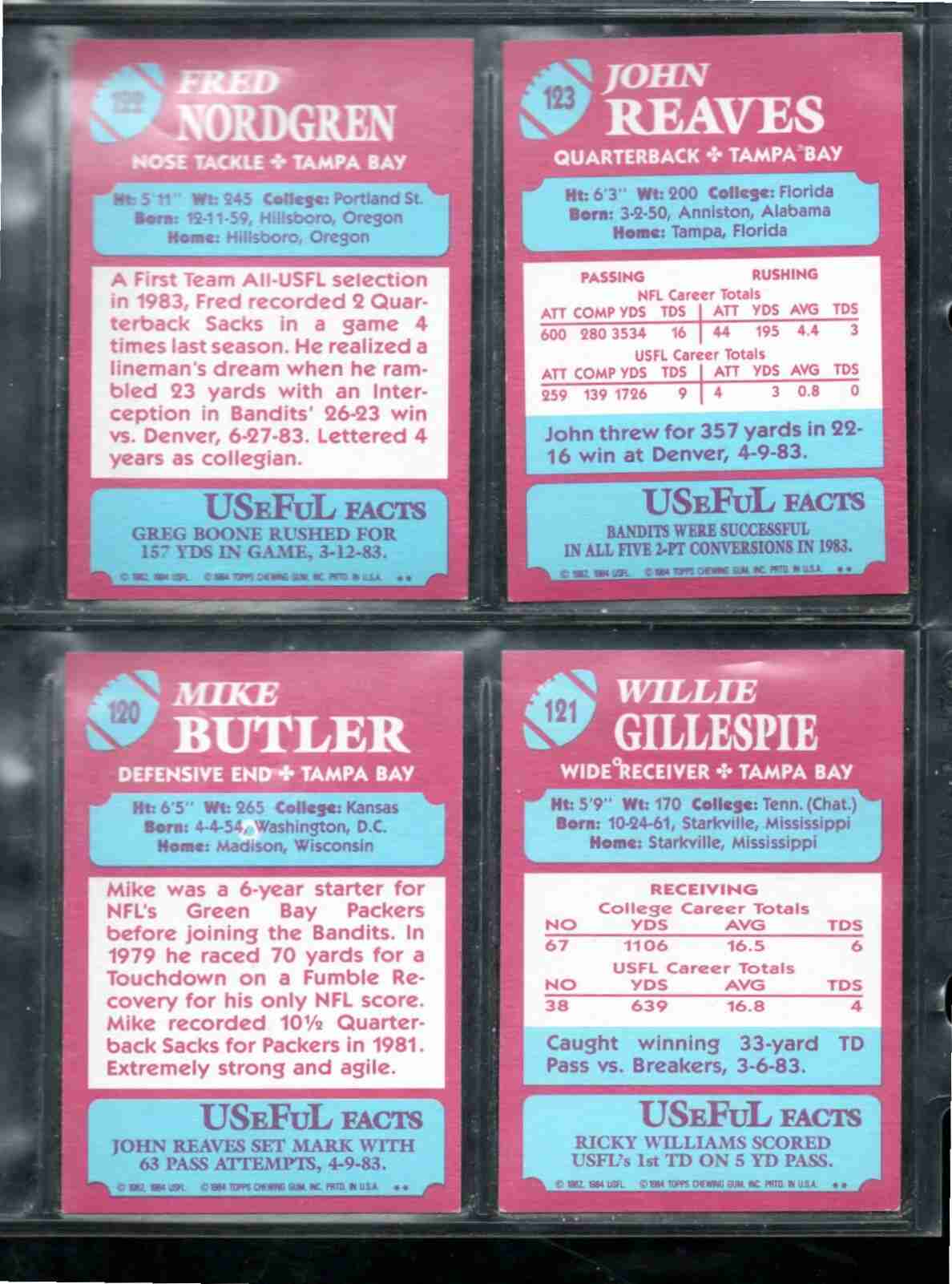 1984 Topps USFL TAMPA BAY BANDITS Lot of 4