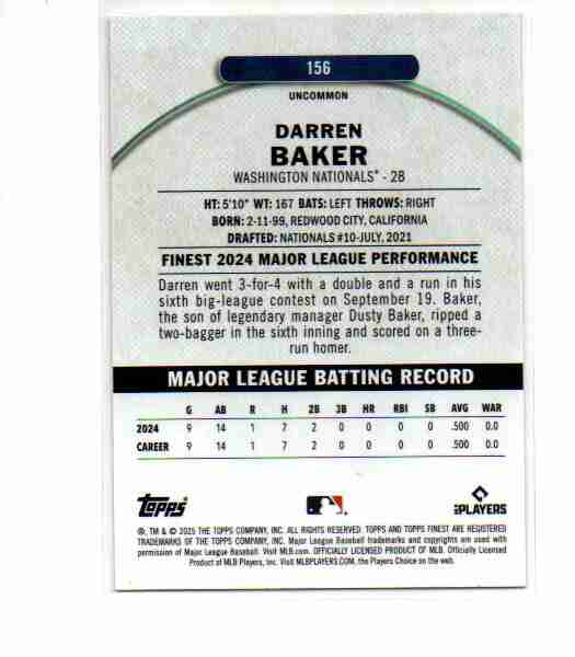 DARREN BAKER RC - 2025 TOPPS FINEST - 254/300