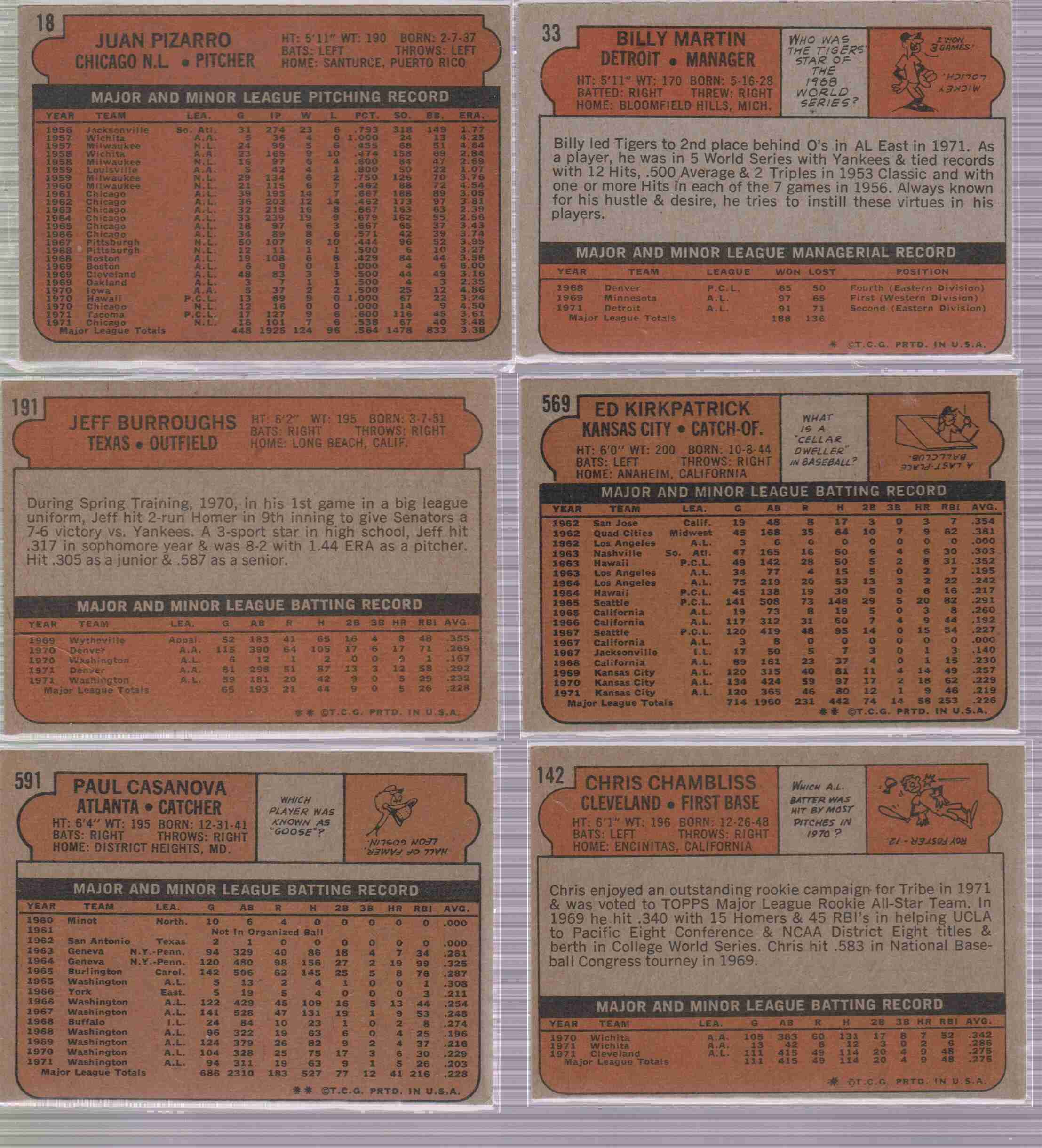 1972 Topps Lot Of 6