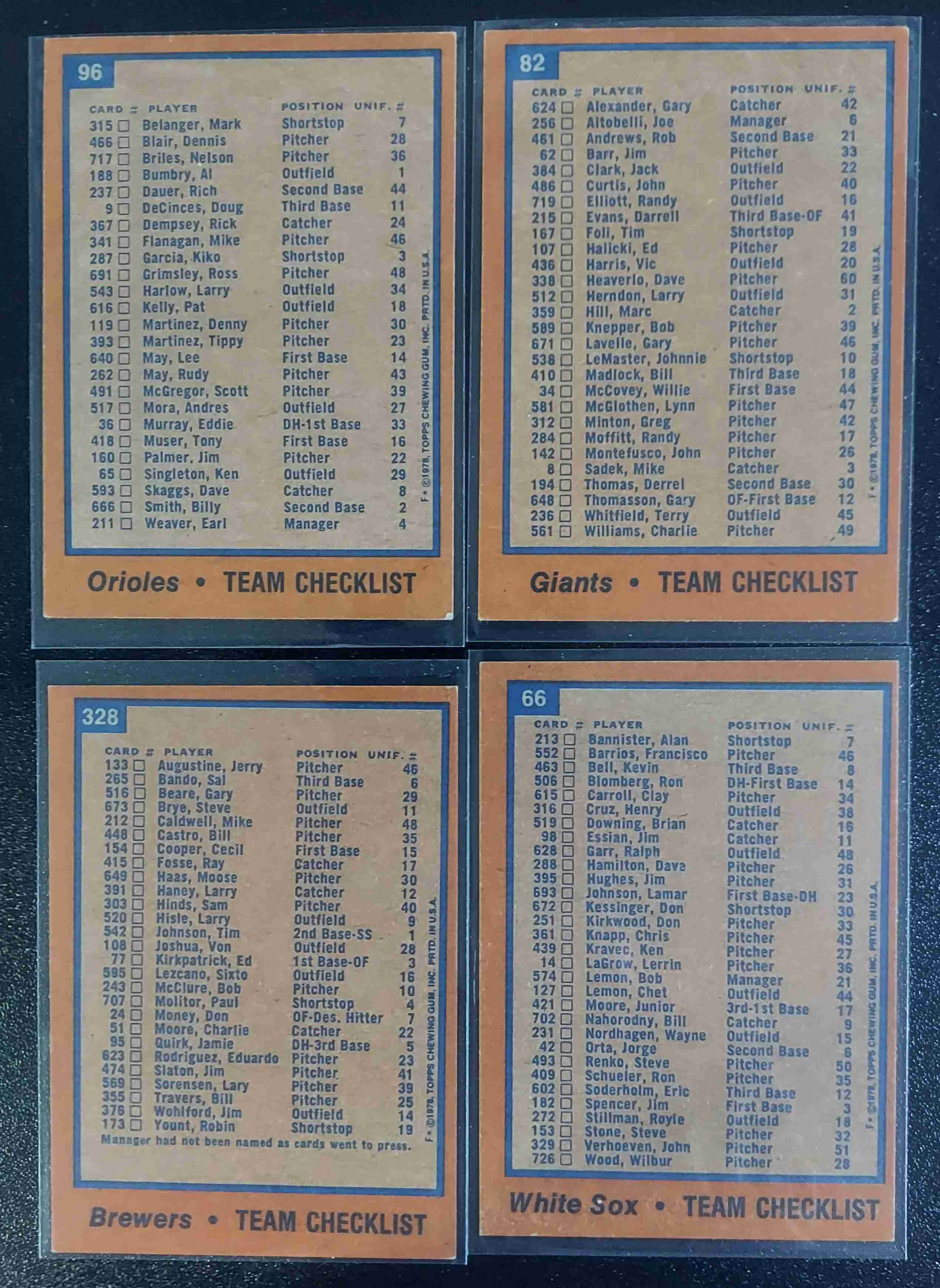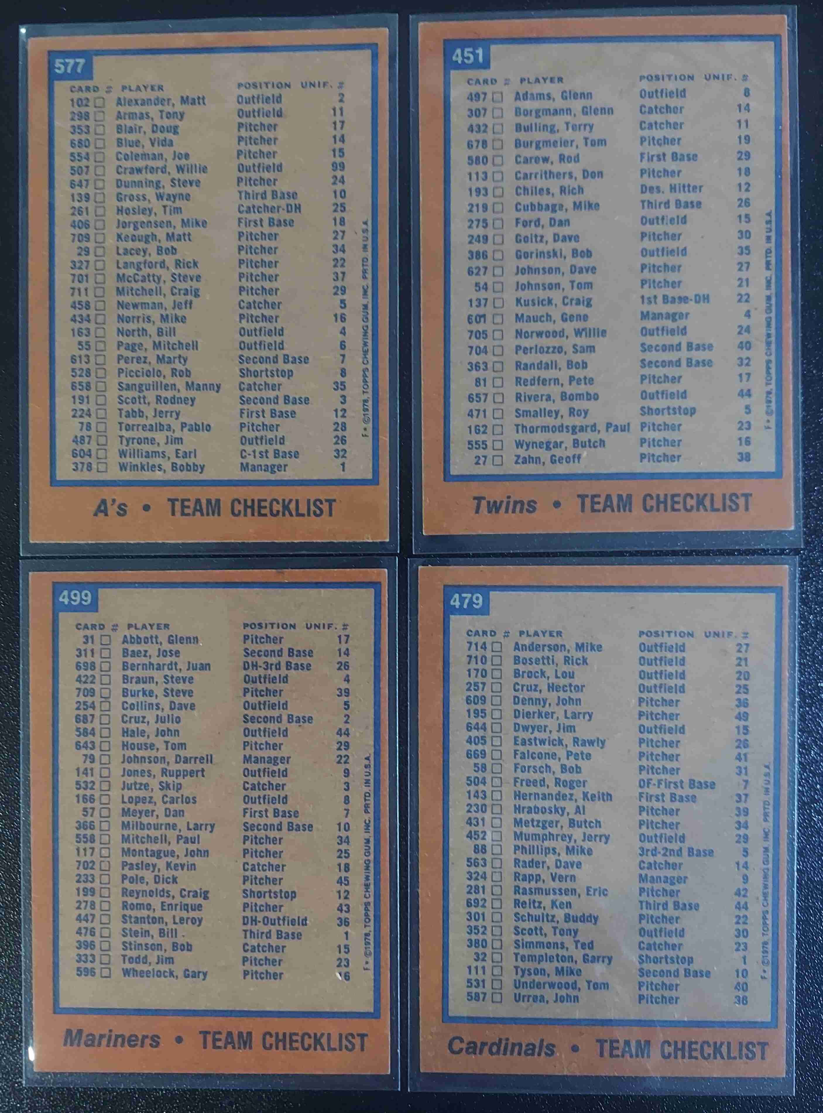 Twins, Cardinals, A's, Mariners, Giants, White Sox, Orioles, Brewers all EX+ and unmarked. great Lot