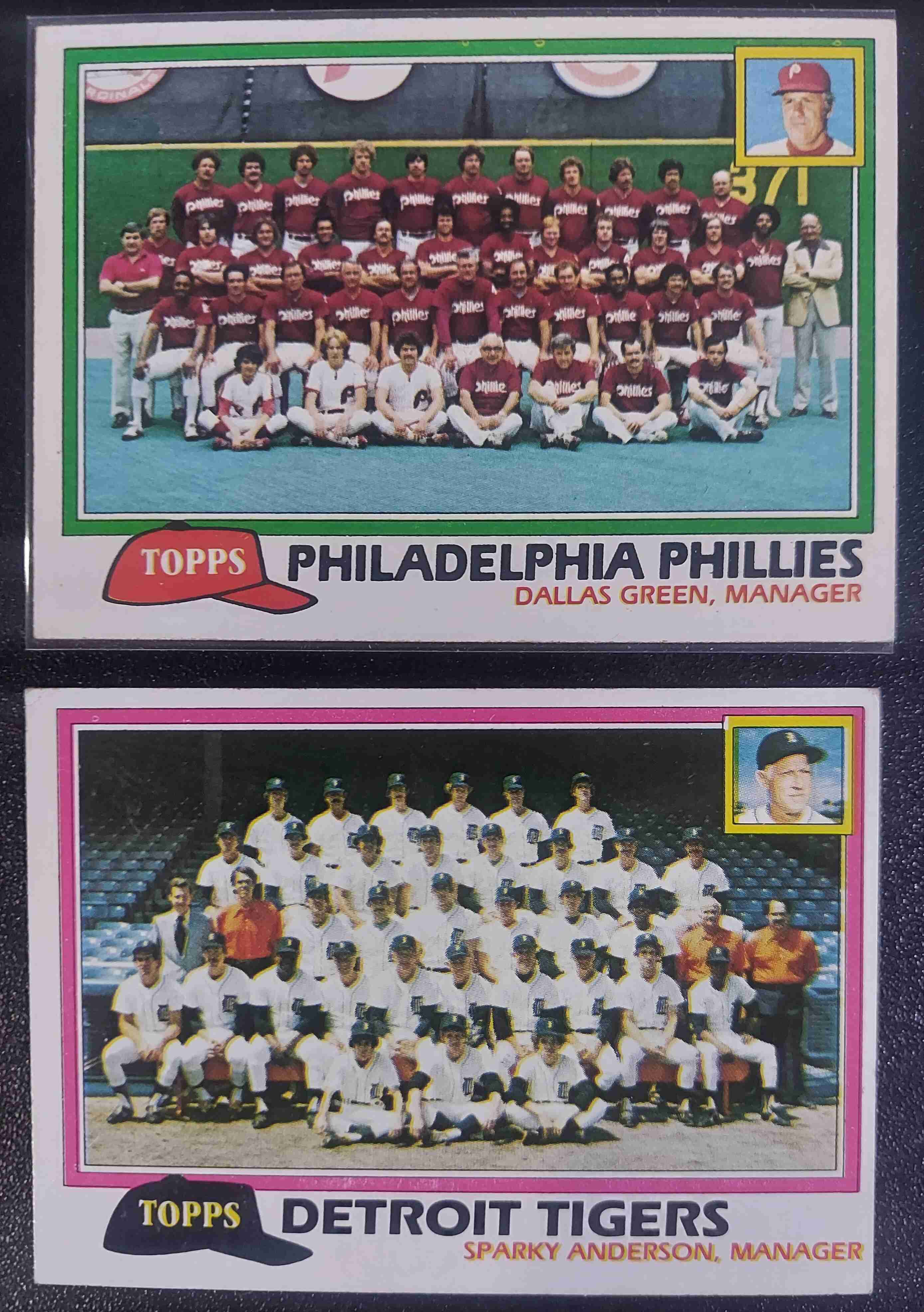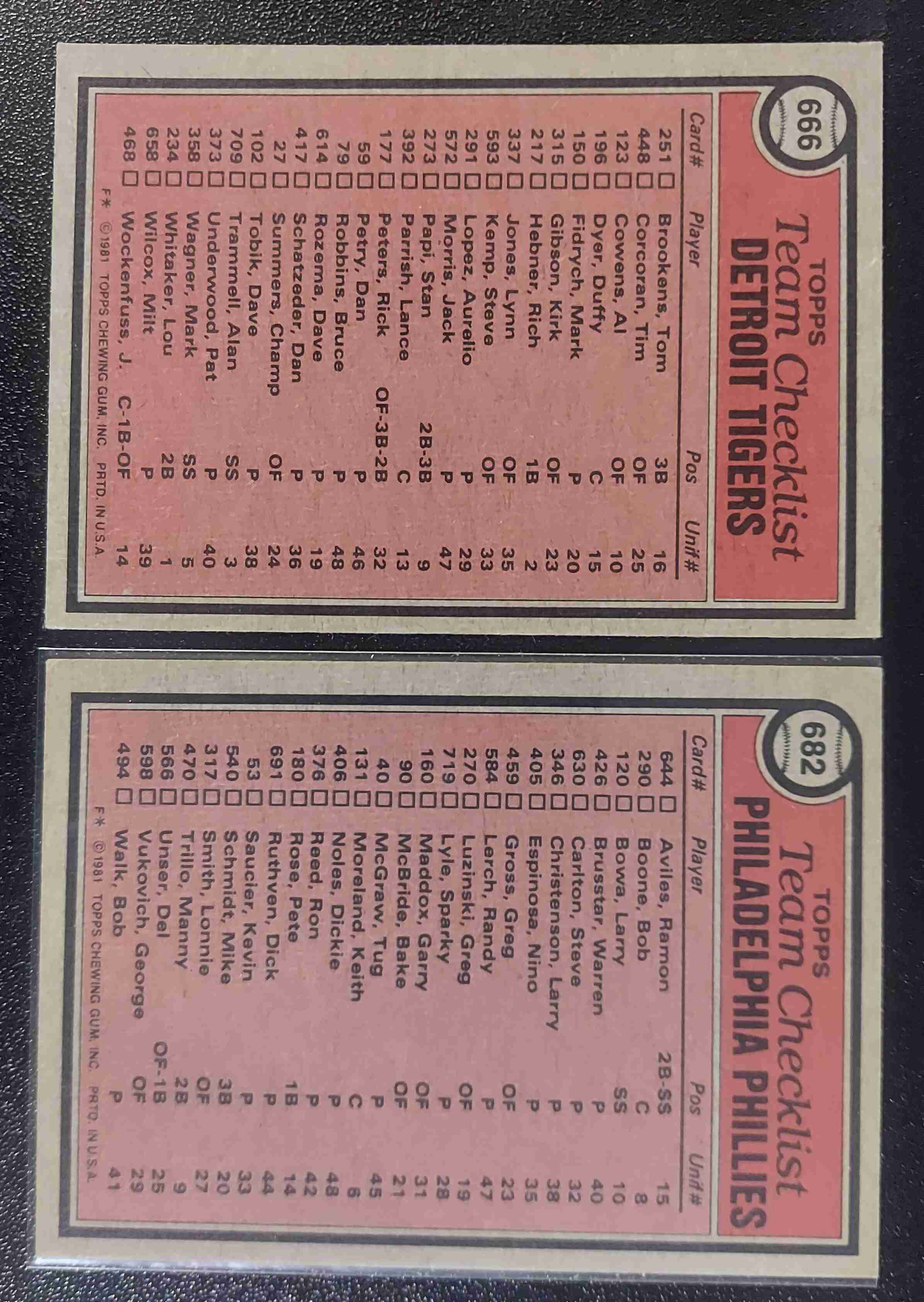 1981 Topps #666 Tigers & #682 Phillies Unmarked Team card