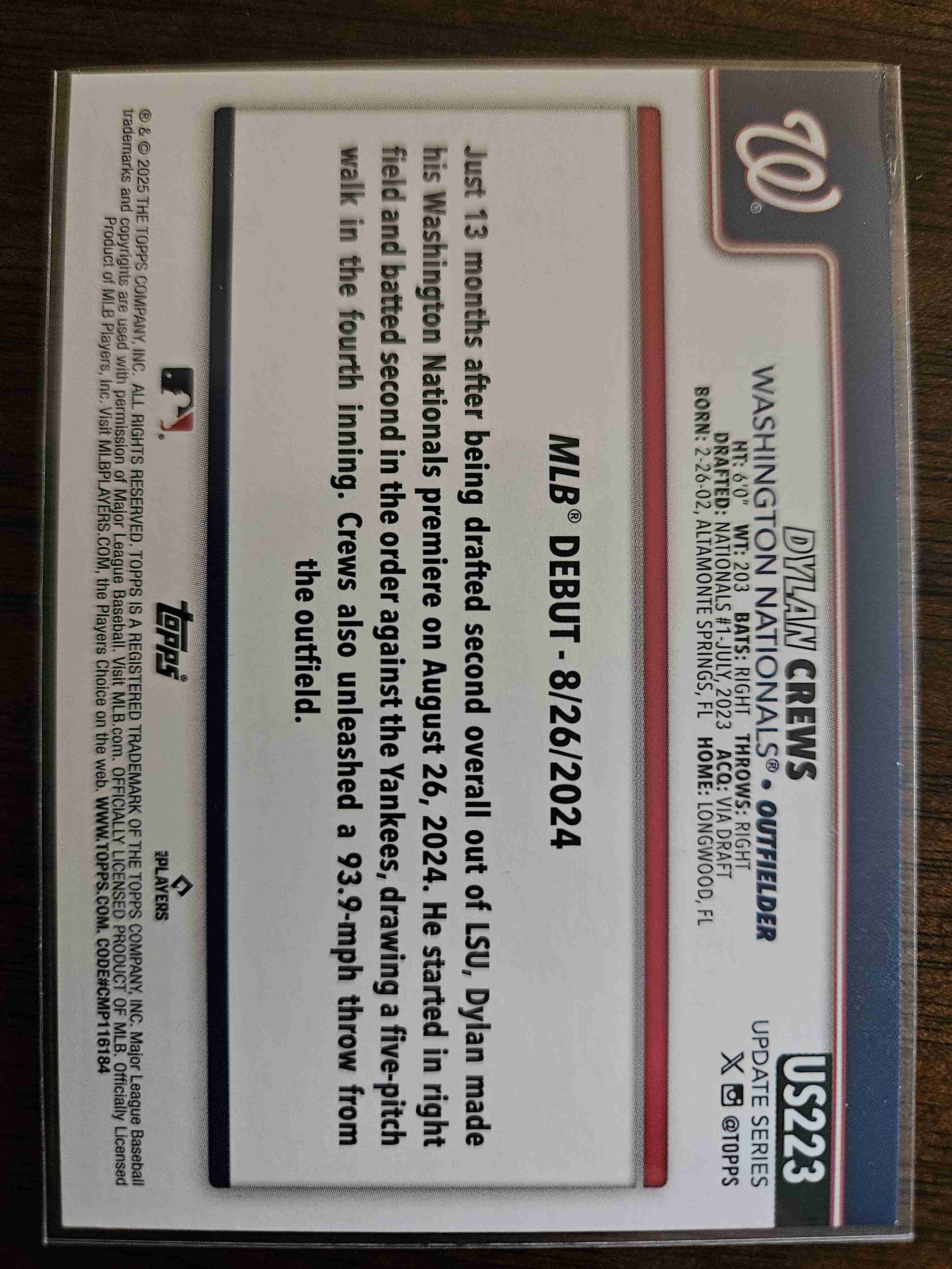 Dylan Crews 2025 Topps Update Rookie Debut Rookie