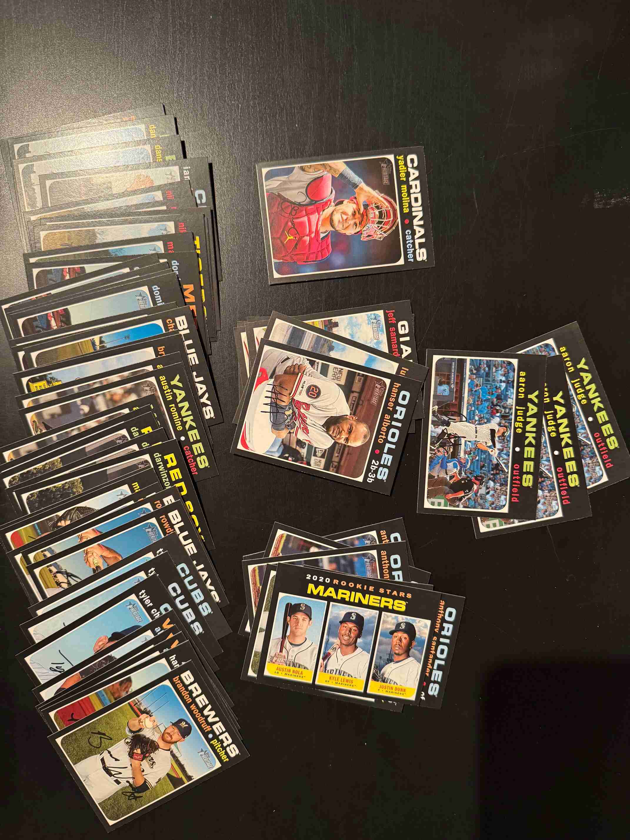 Cards include players such as Aaron Judge, Gerrit Cole, Yadier Molina, Manny Machado, Max Scherzer, Steven Strausburg, and more. Please see photos for examples of the cards included in this lot.