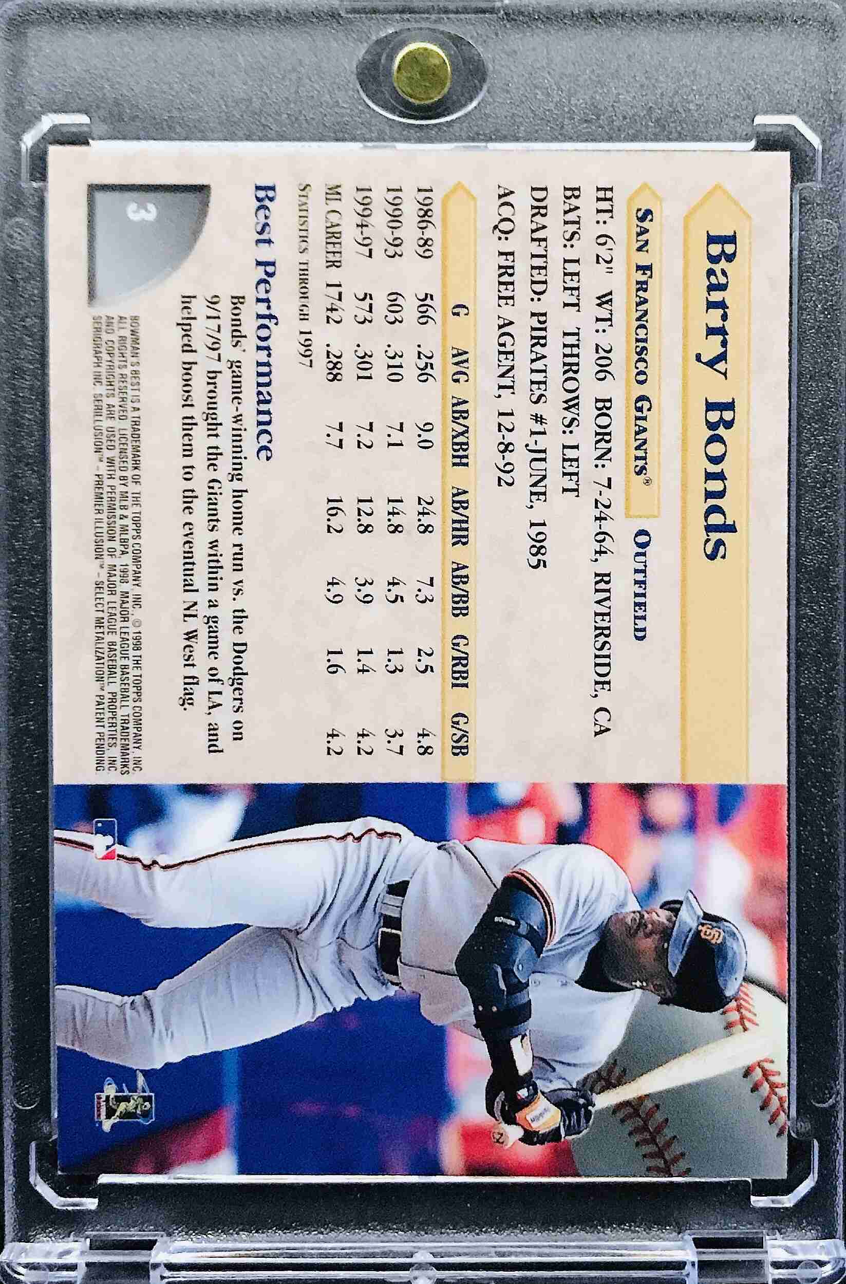 BARRY BONDS - 1998 Bowman's Best #3 - SAN FRANCISCO GIANTS
