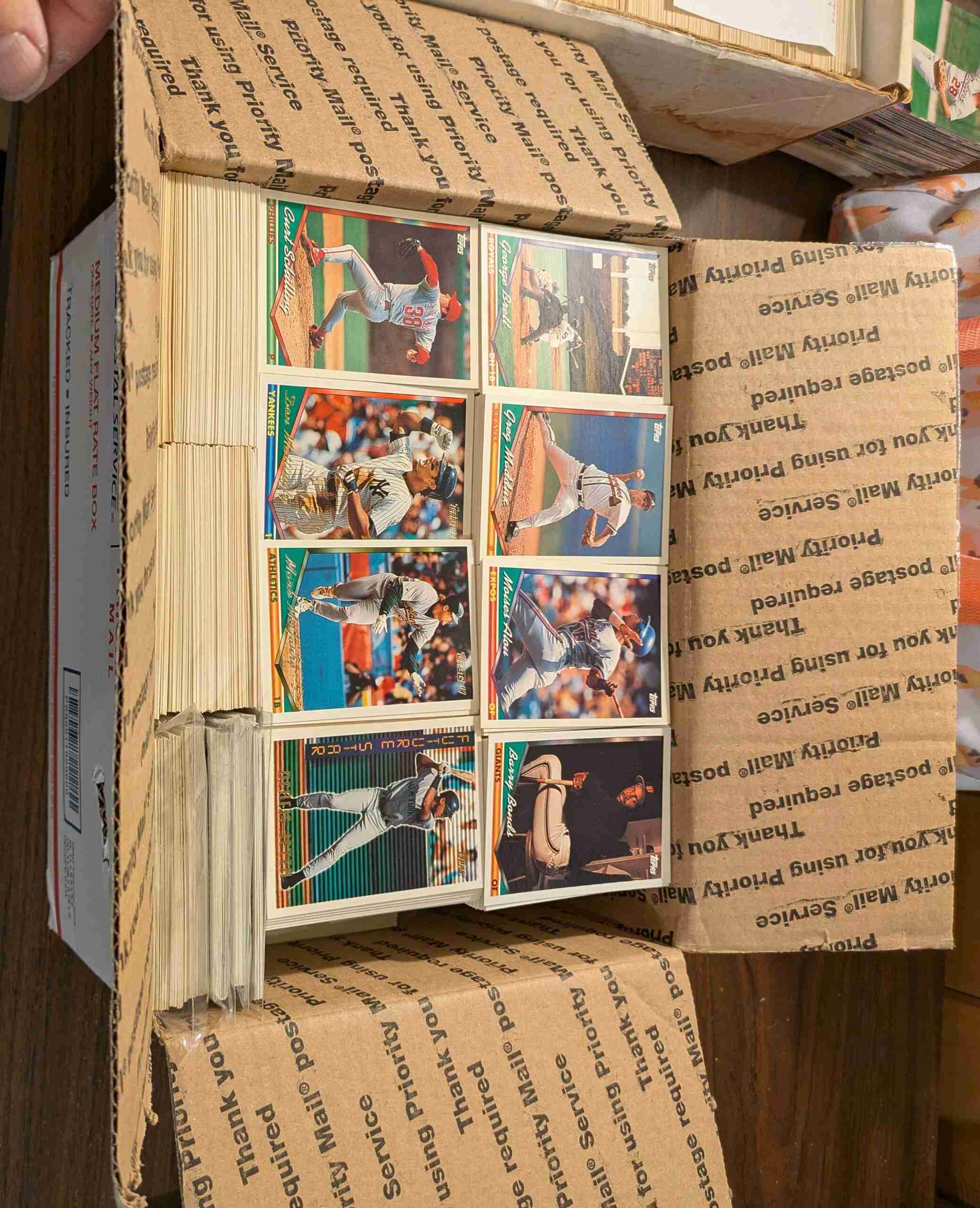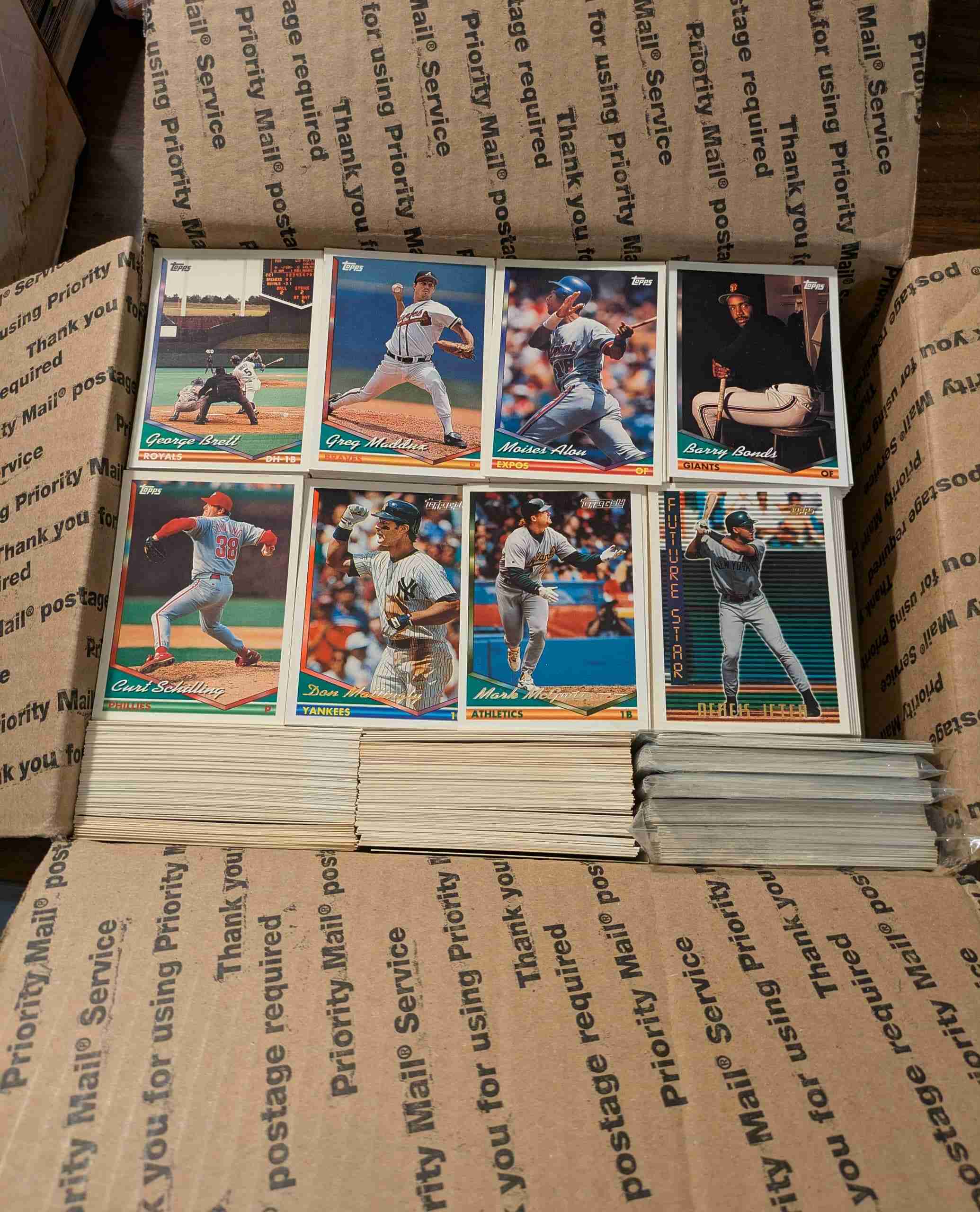 Medium Flat Rate Box filled with 1994 & 1995 Topps Baseball; Includes @ 250 1994 Topps Gold Parallels and @ 145 1995 Cyberstat Parallels.