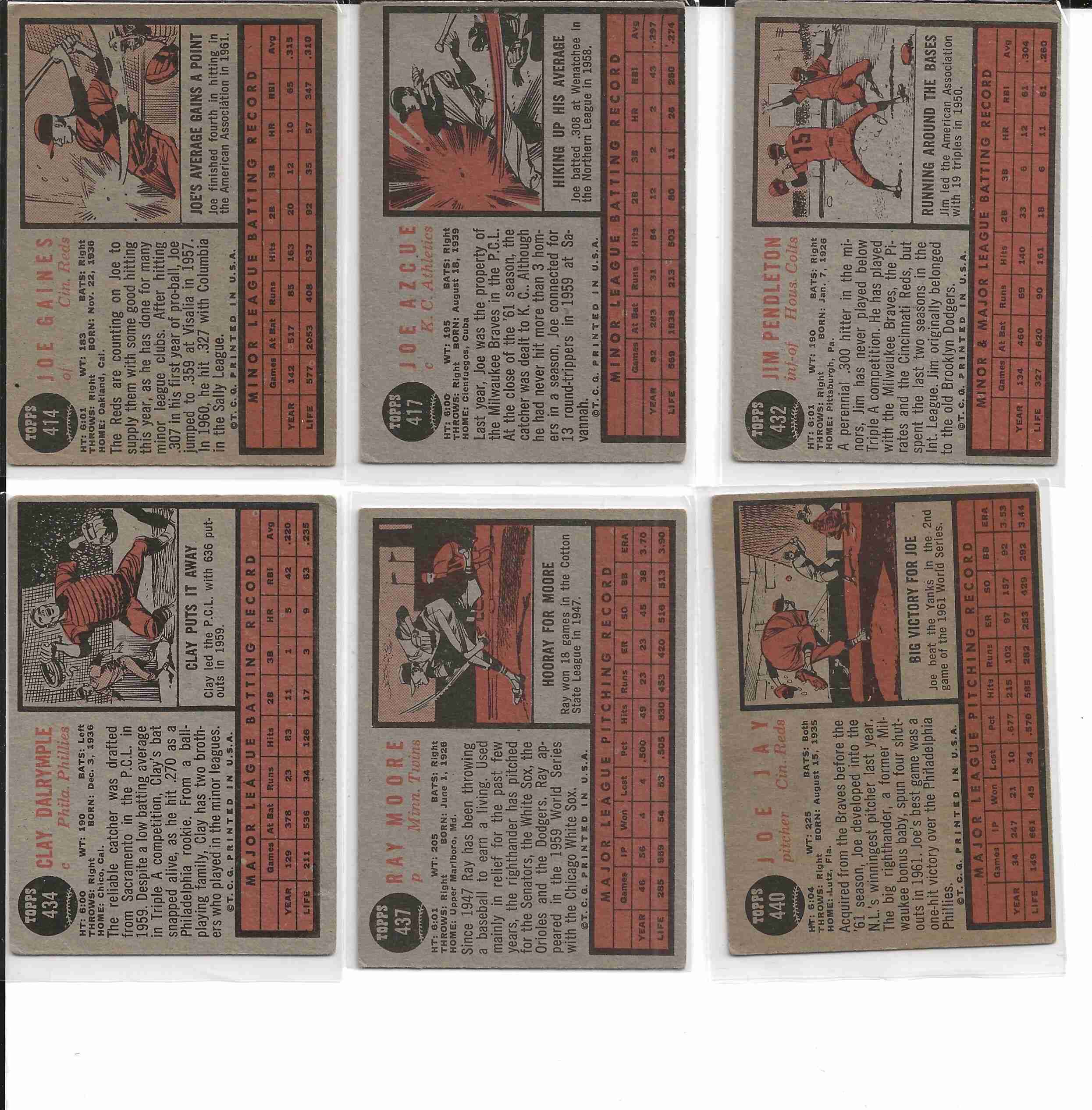 BB 1962 Topps 6-card lot $36 BV. #414 - 440 High Number lot